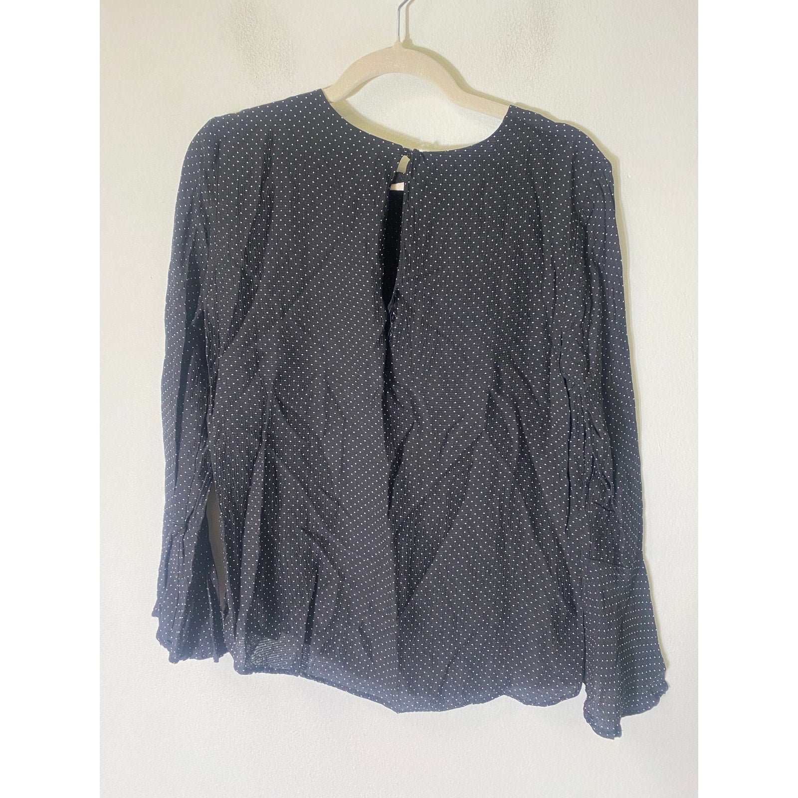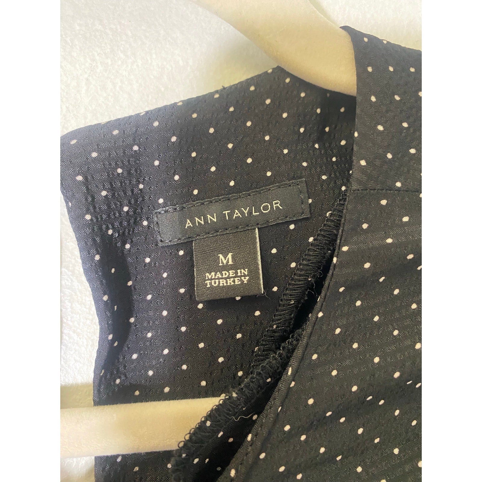 Ann Taylor Black White Polka Dot Long Flair Sleeve Top Sz M