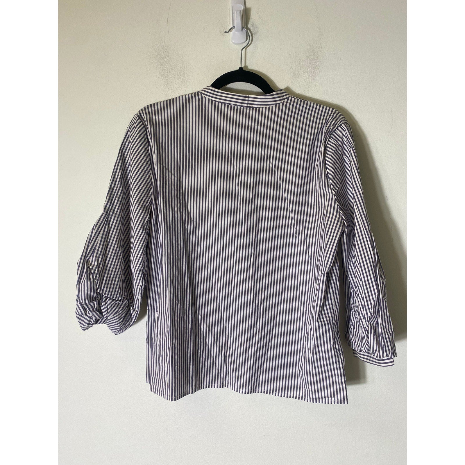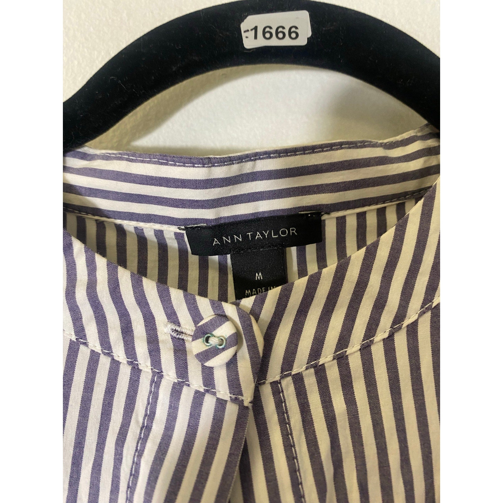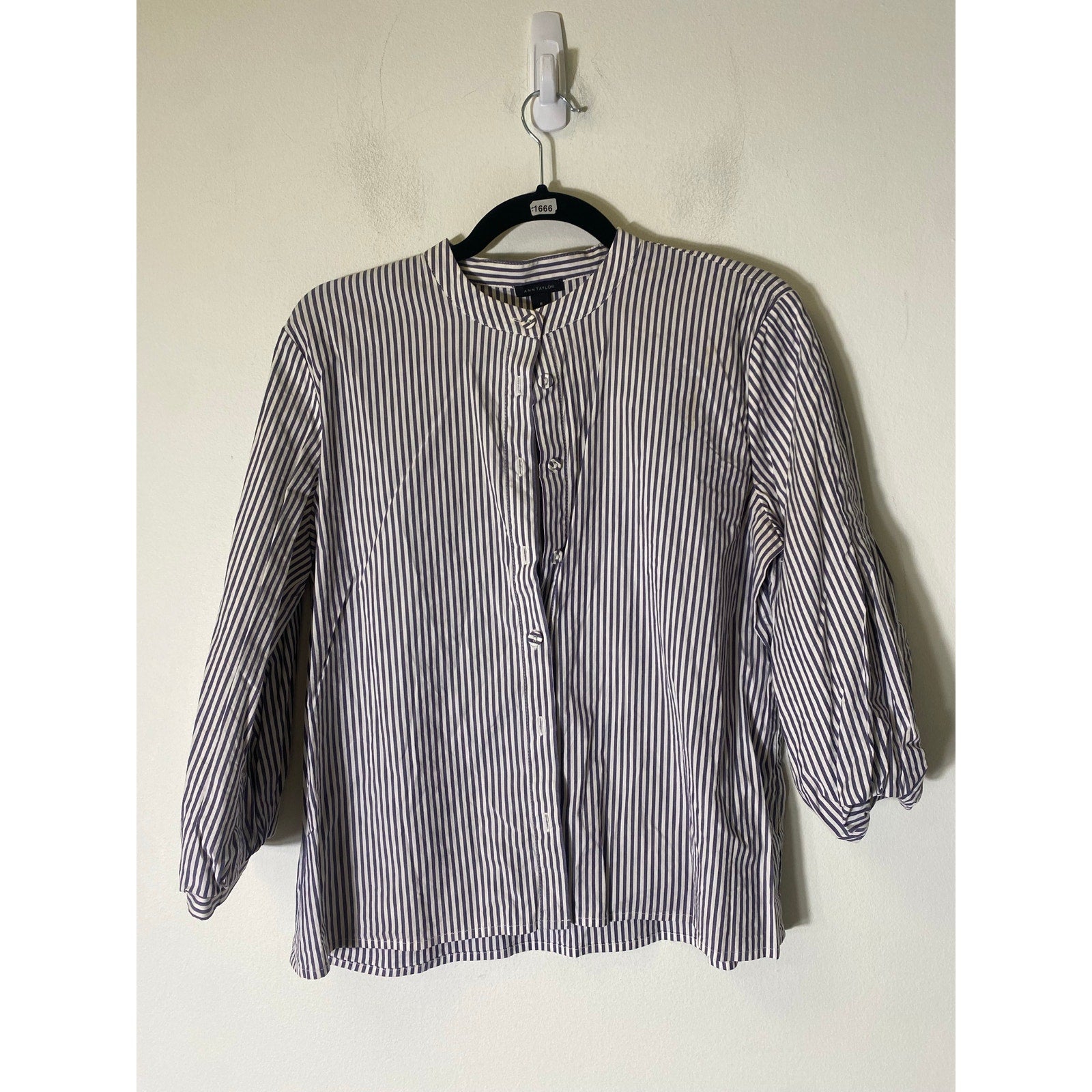 Ann Taylor Blue White Stripe Long Sleeve Cotton Button Up Shirt Sz M