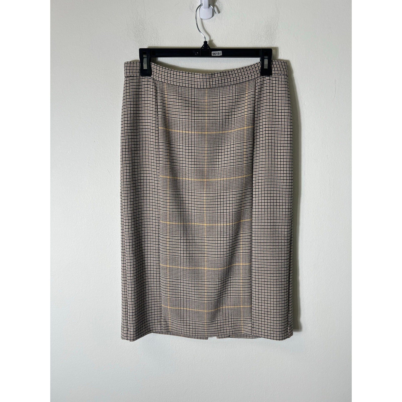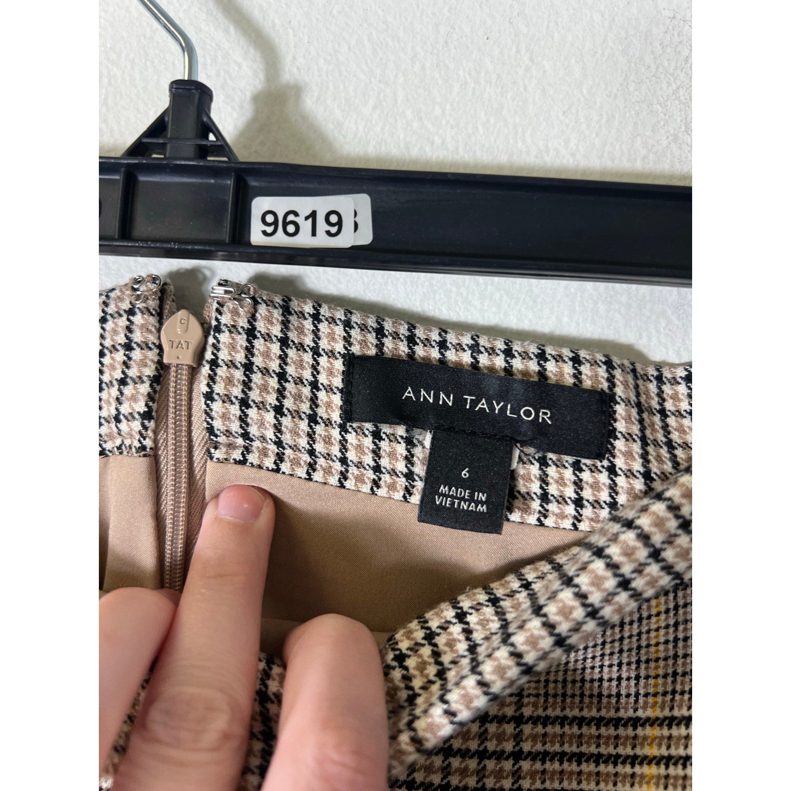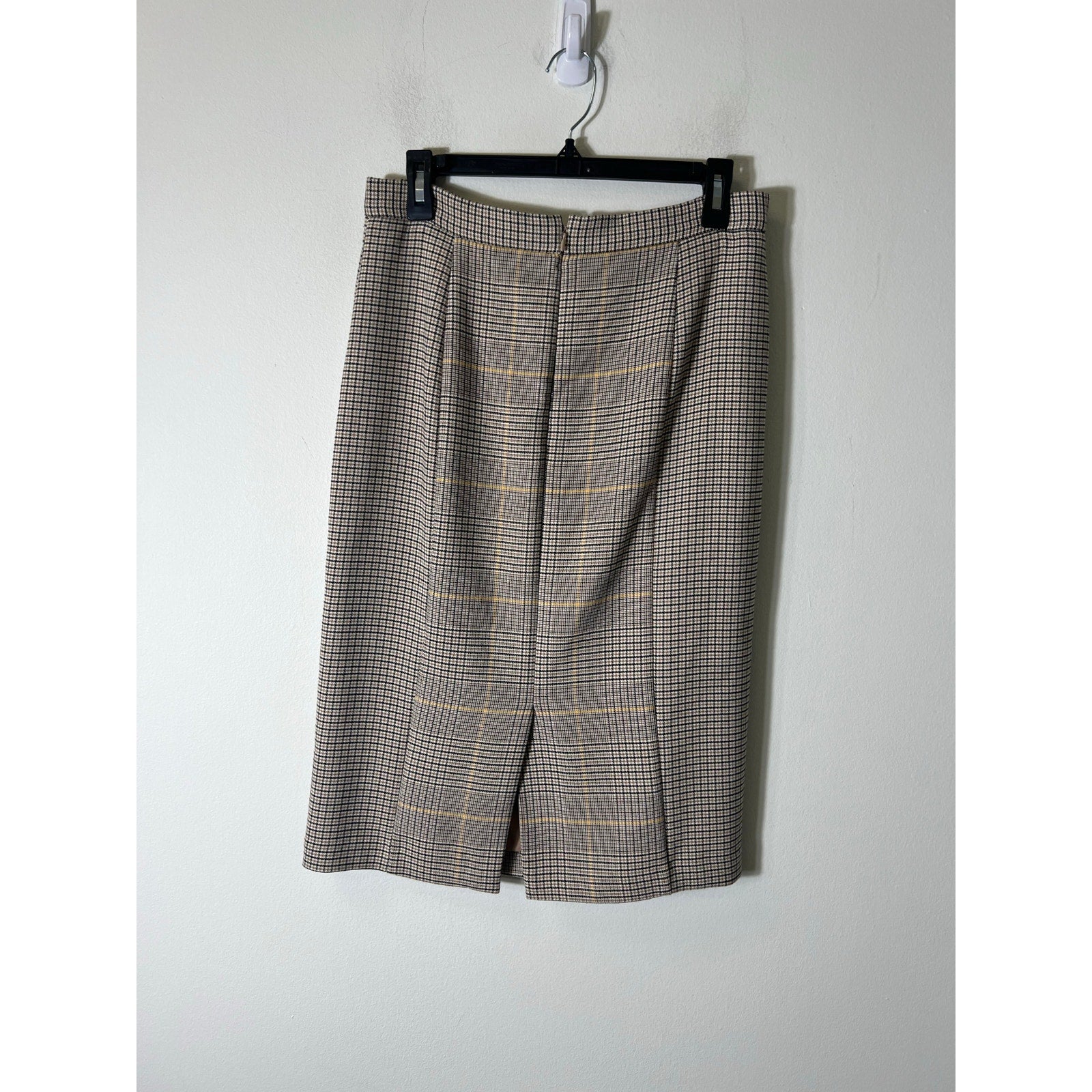 Ann Taylor Tan Black Plaid Midi Pencil Skirt Sz 6
