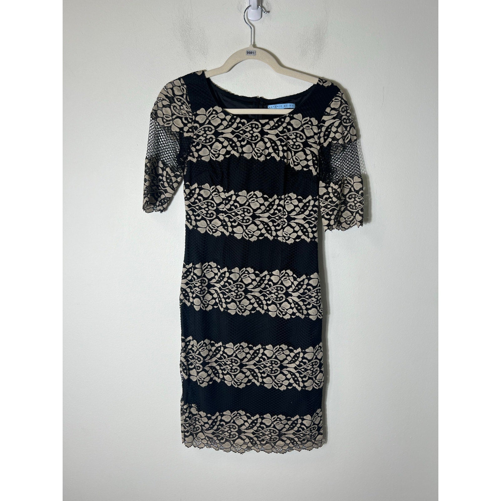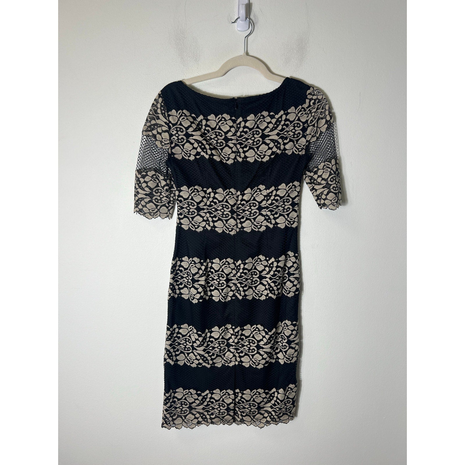 Antonio Melani Black and Nude Short Sleeve Midi Pencil Dress Sz 0