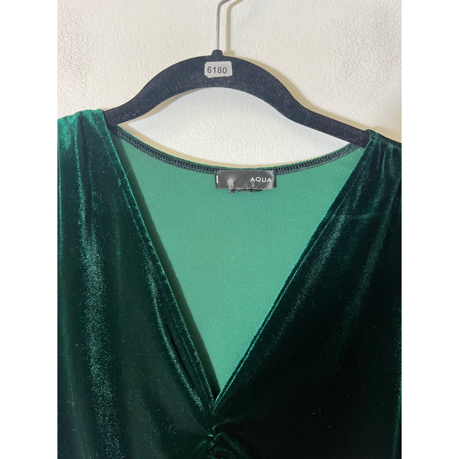 Aqua Green Velvet V Neck Dress Fits like girls Sz 14