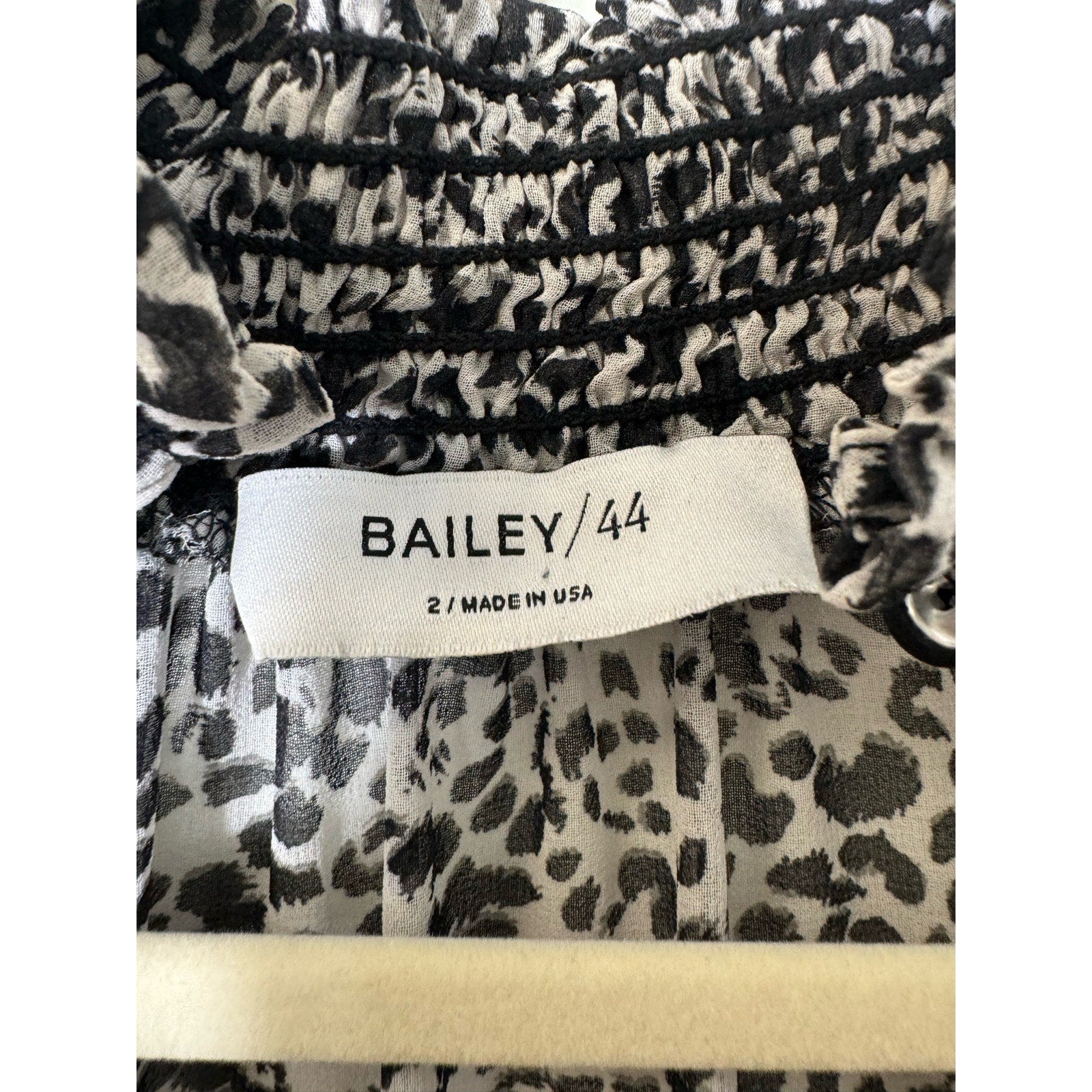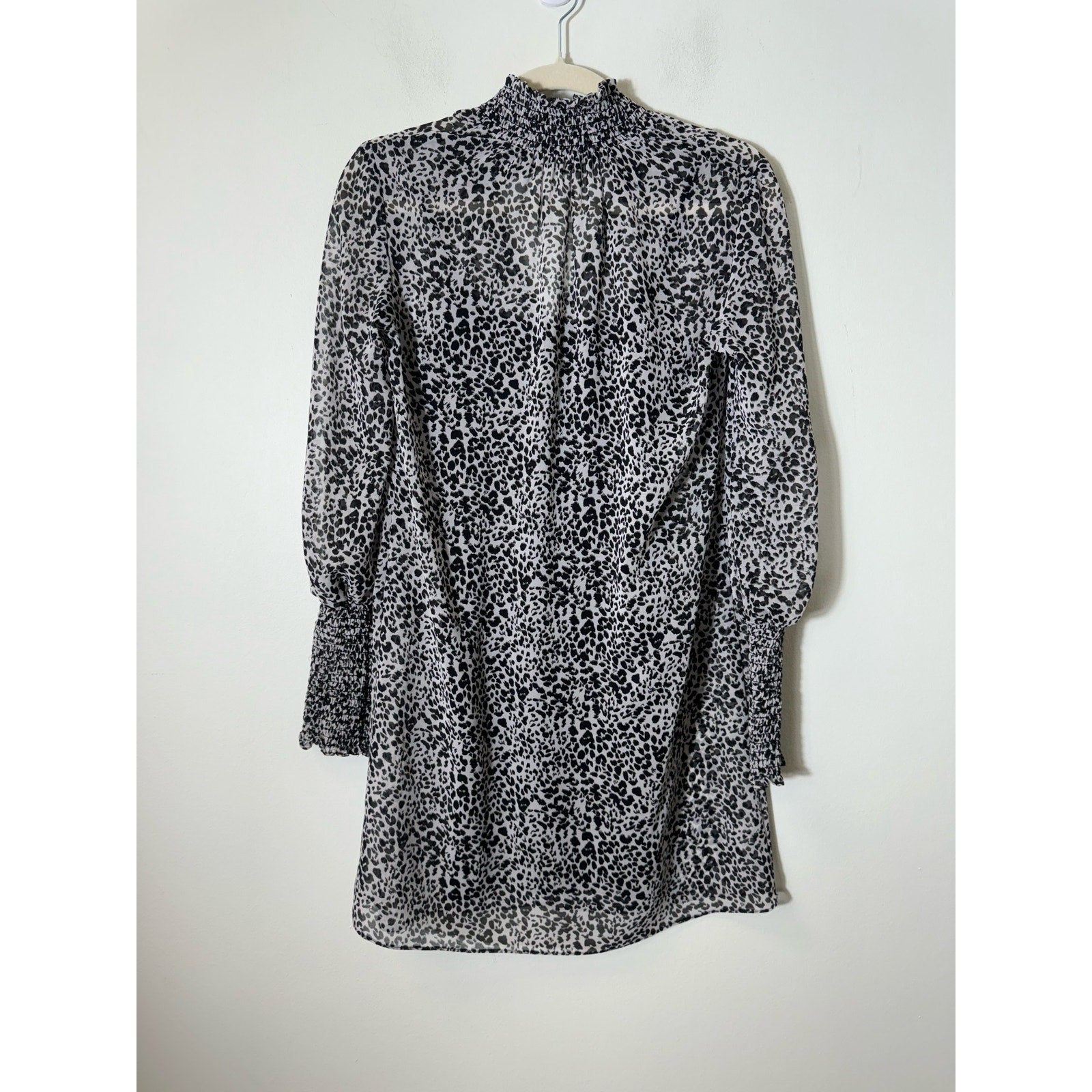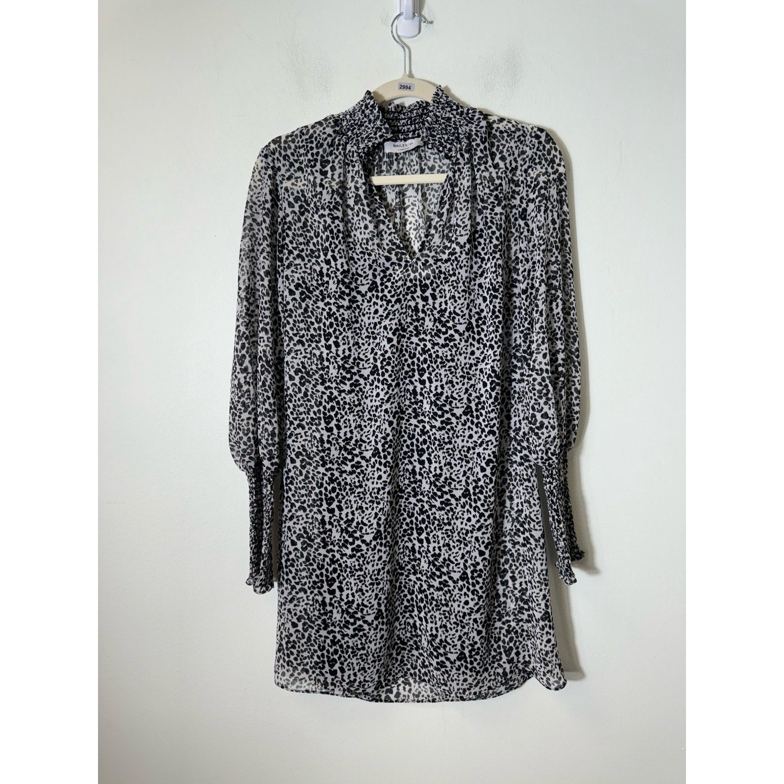 Bailey 44 Gray Leopard Print Long Sleeve Mini Dress Sz 2. Semi-sheer outer layer and black slip dress that goes underneath.  Smocked neck with buttons.  Cute going out dress.  Great condition.