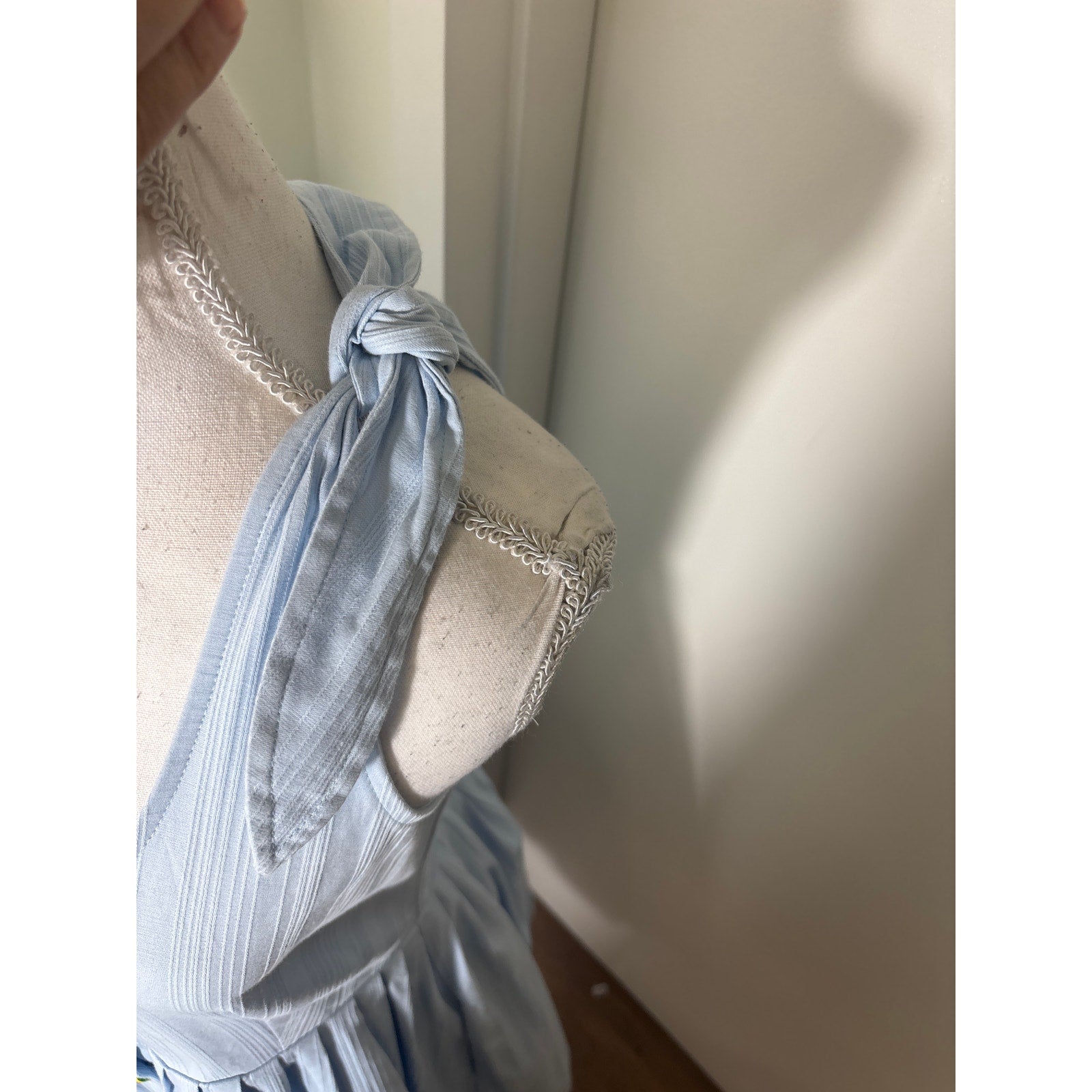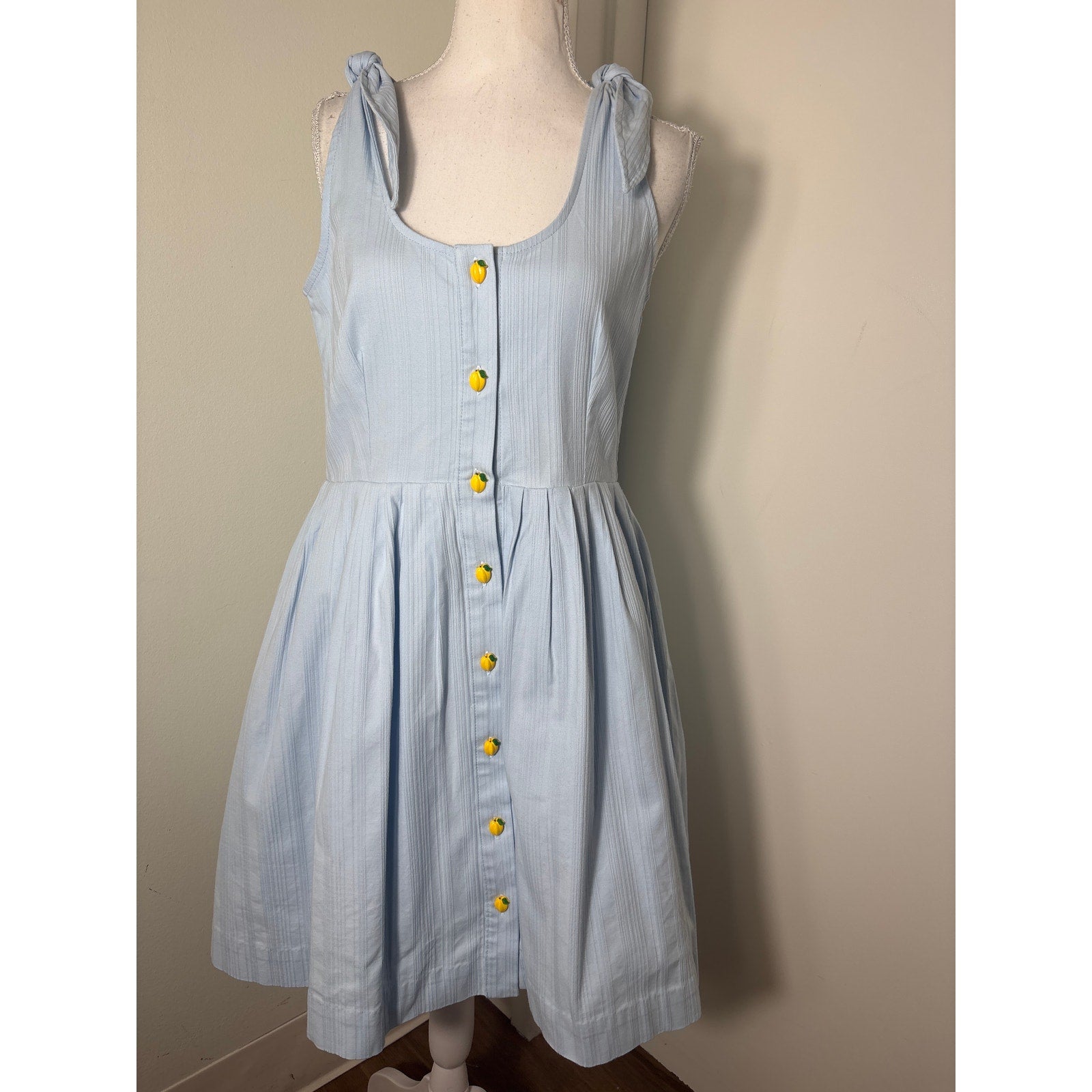 Buru Baby Blue Tie Shoulder A Line Lemon Button Dress Sz S
