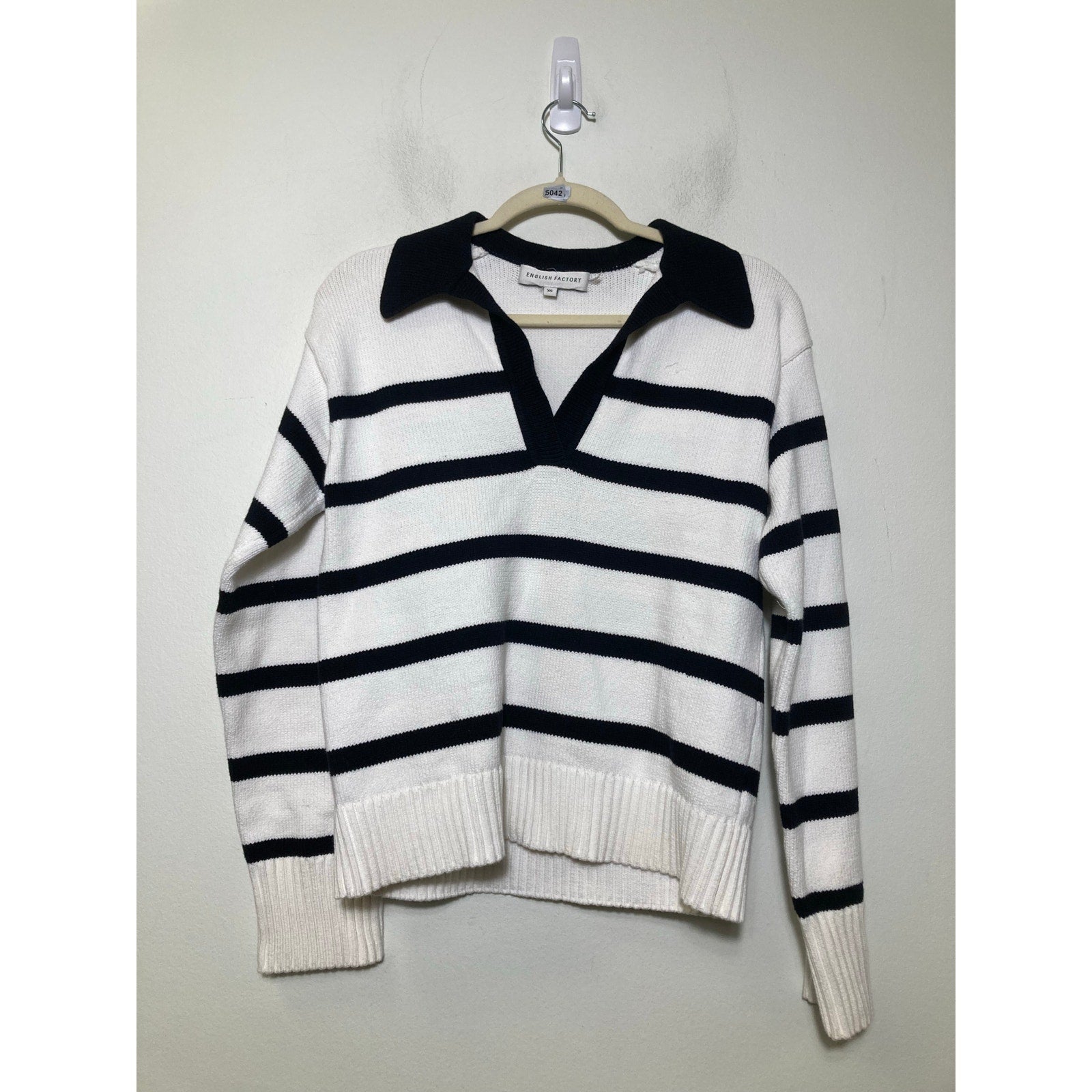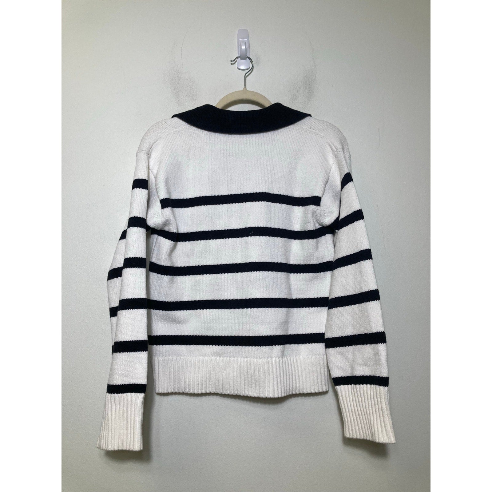 English Factory White W Black Stripe Collared Swetaer Sz xs