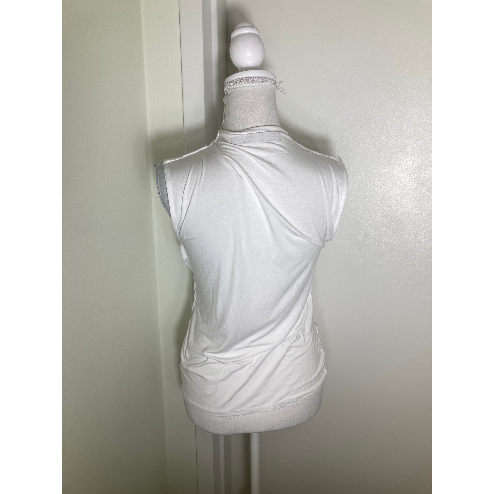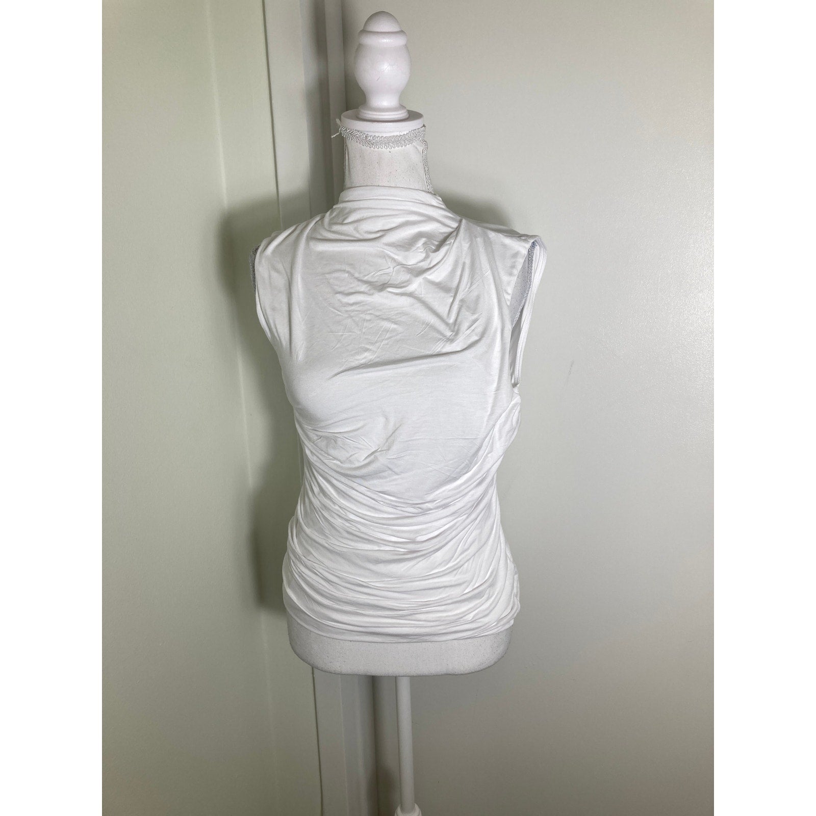 Enza Costa Crisp White Sleeveless Ruched High Neck Shirt Sz S