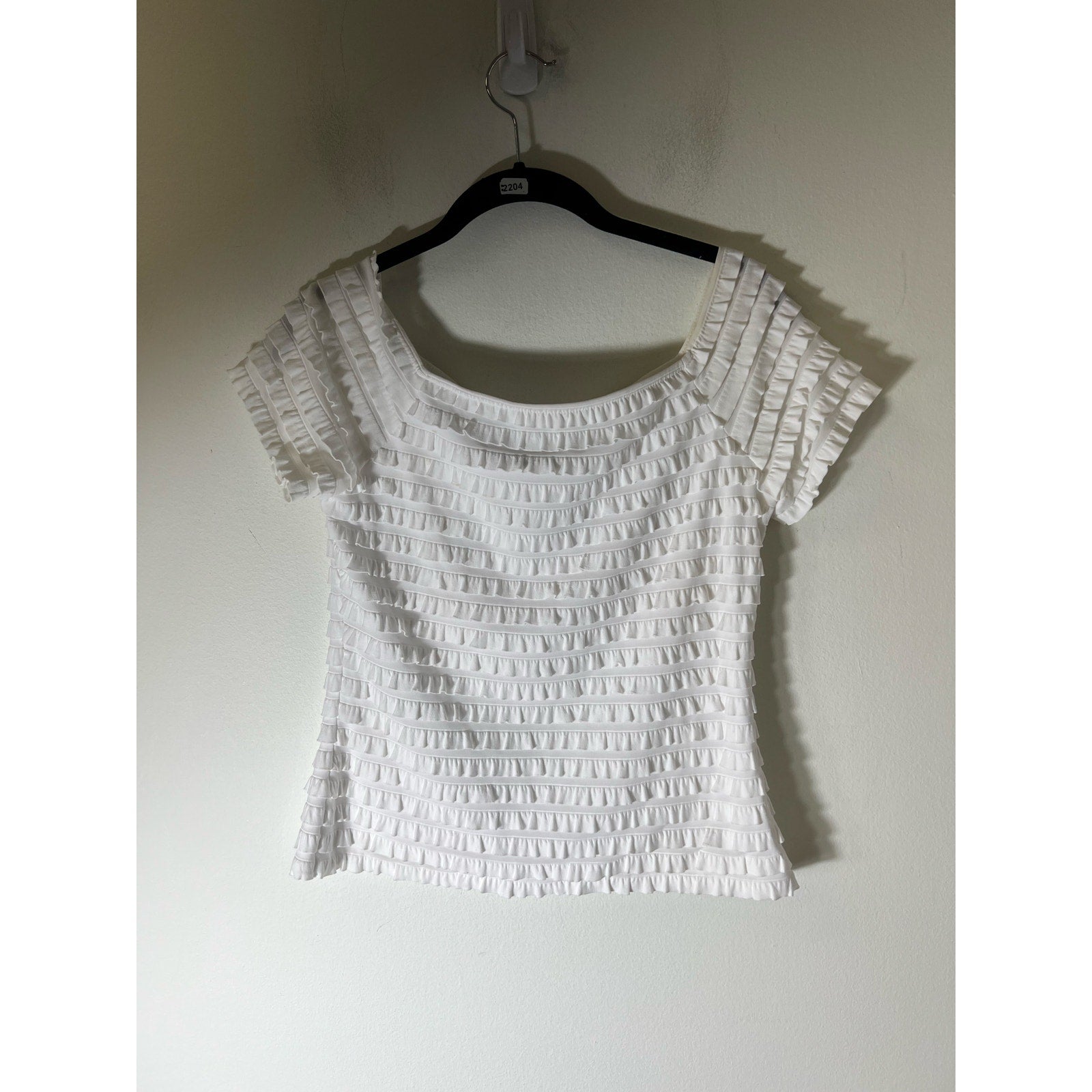 Frank Lyman White Fitted Short Sleeve Mini Ruffled Top Sz 8