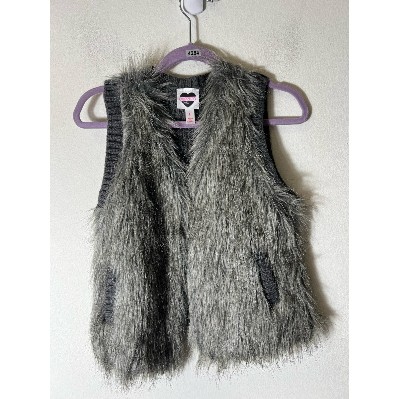 Girls Cherry Stix Gray Sleeveless Faux Fur Sweater Vest Sz L