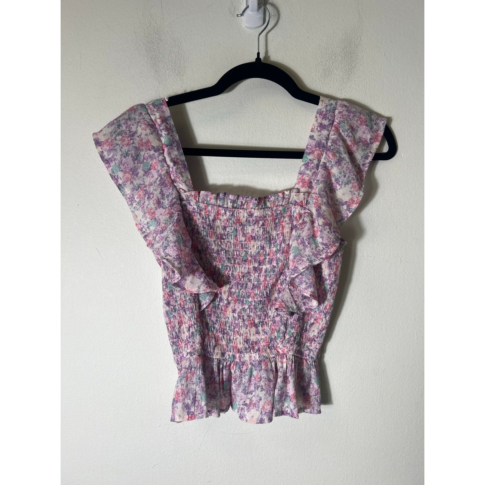 Girls MINE Purple Pink Flutter Sleeve Crochet Top Sz S