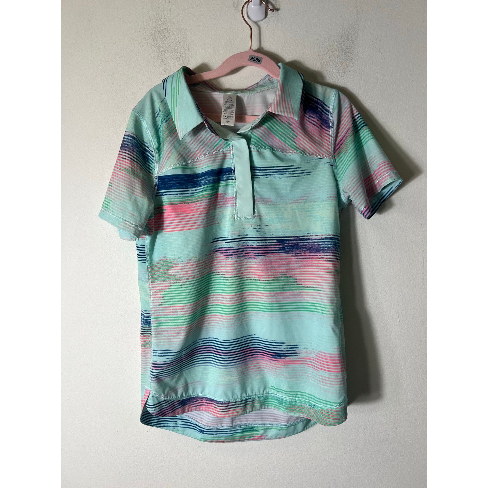 Ivivva Golf/Tennis Top Turquoise/Pink Stripe Design Sz 12