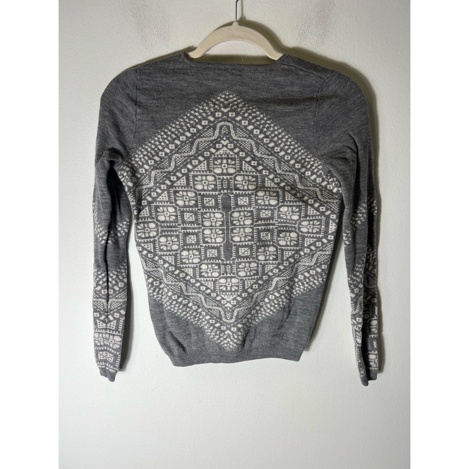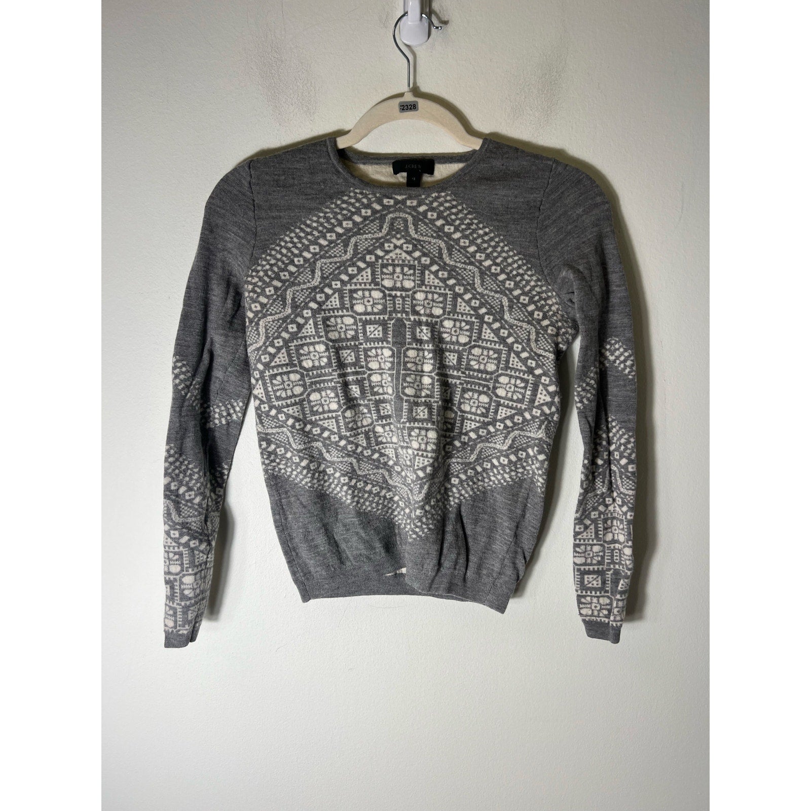 J Crew Gray and White Snowflake Pullover Sweater Sz XS
