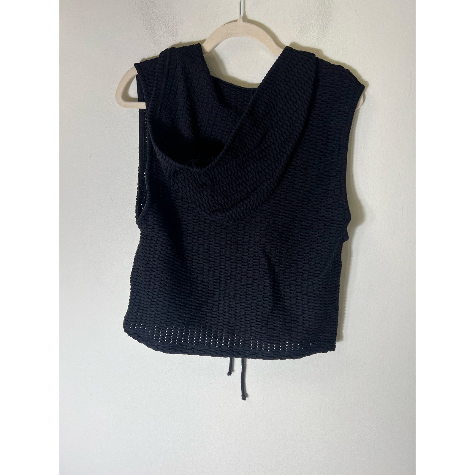 Lanston Sport Black Knit Sleeveless Hooded Top Sz M