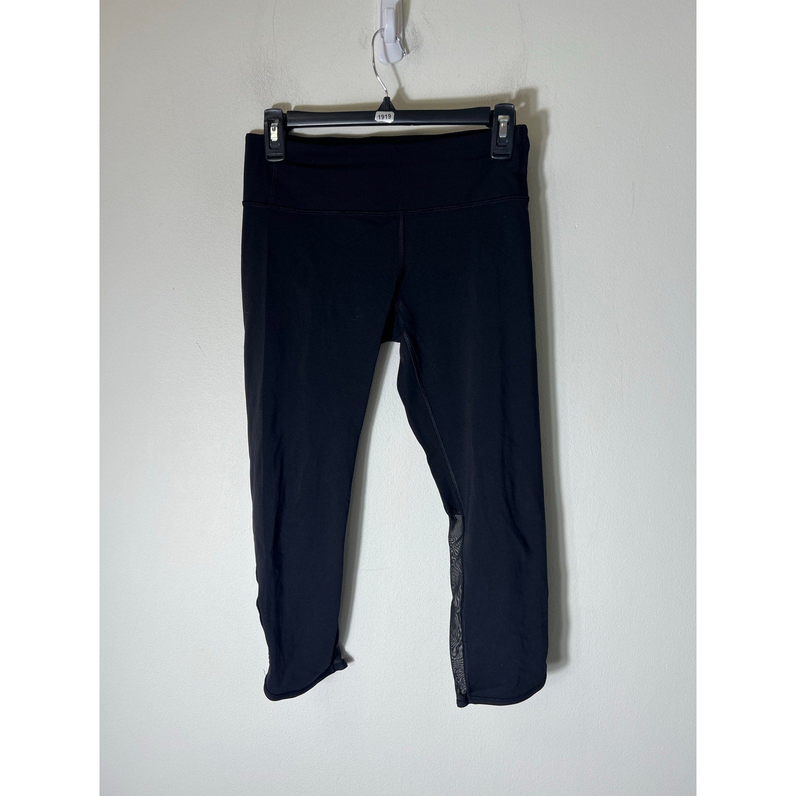 Lululemon Black Capri Athletic Leggings with Mesh Detailing on Calves Sz 6