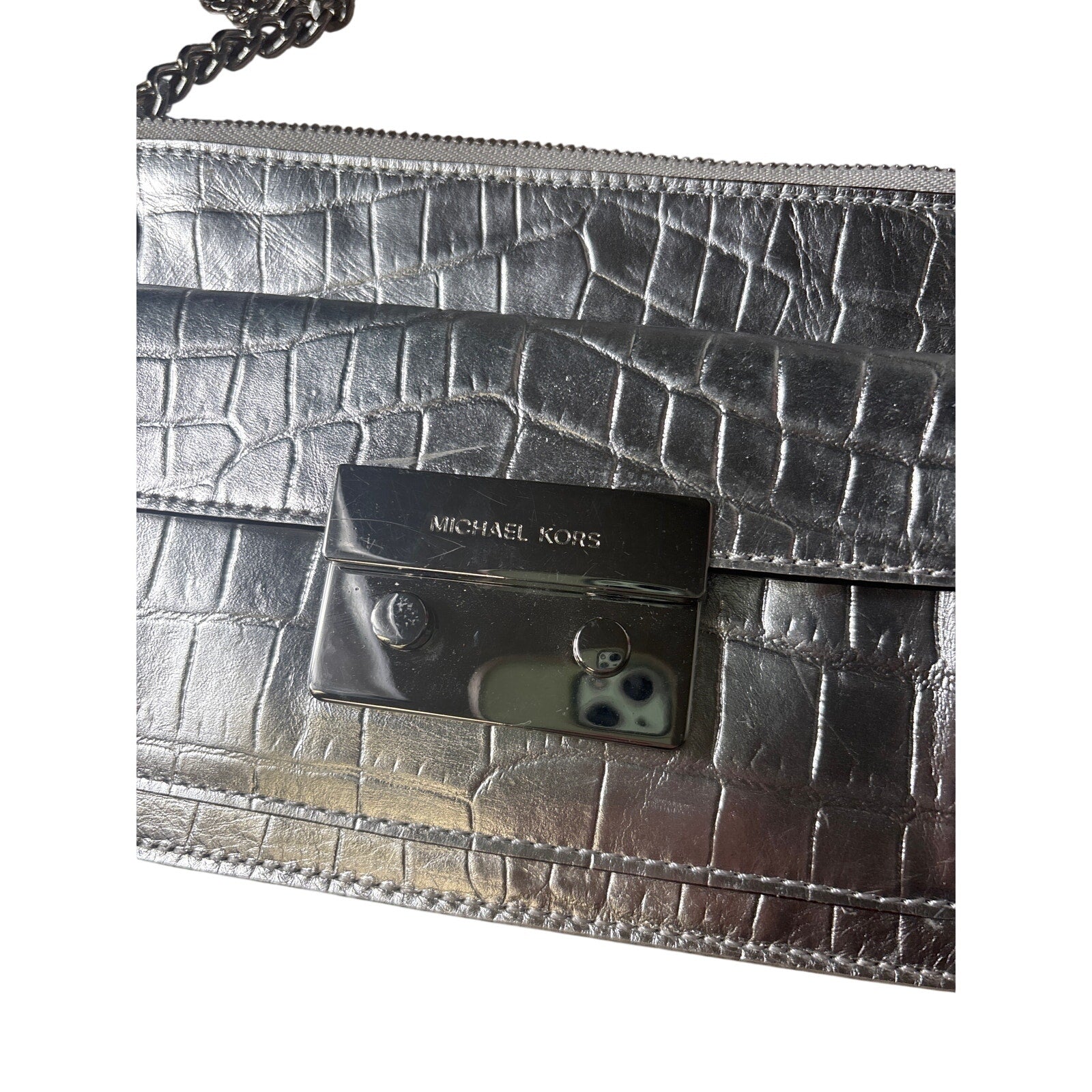 Michael Kors Metallic Silver Faux Croc Crossbody Purse