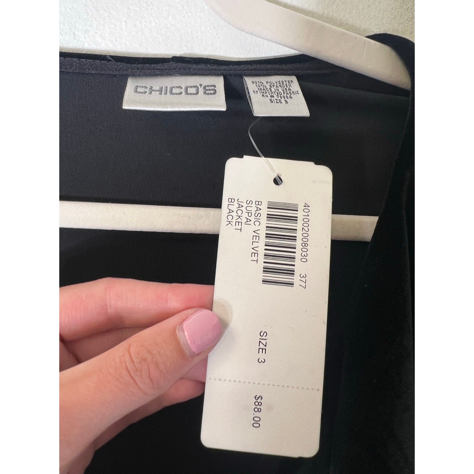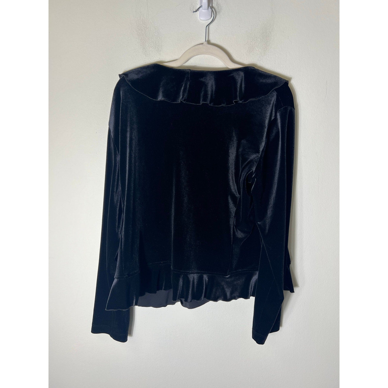 NWT Chicos Black Long Sleeve Velour Ruffle Cardigan Sz 3