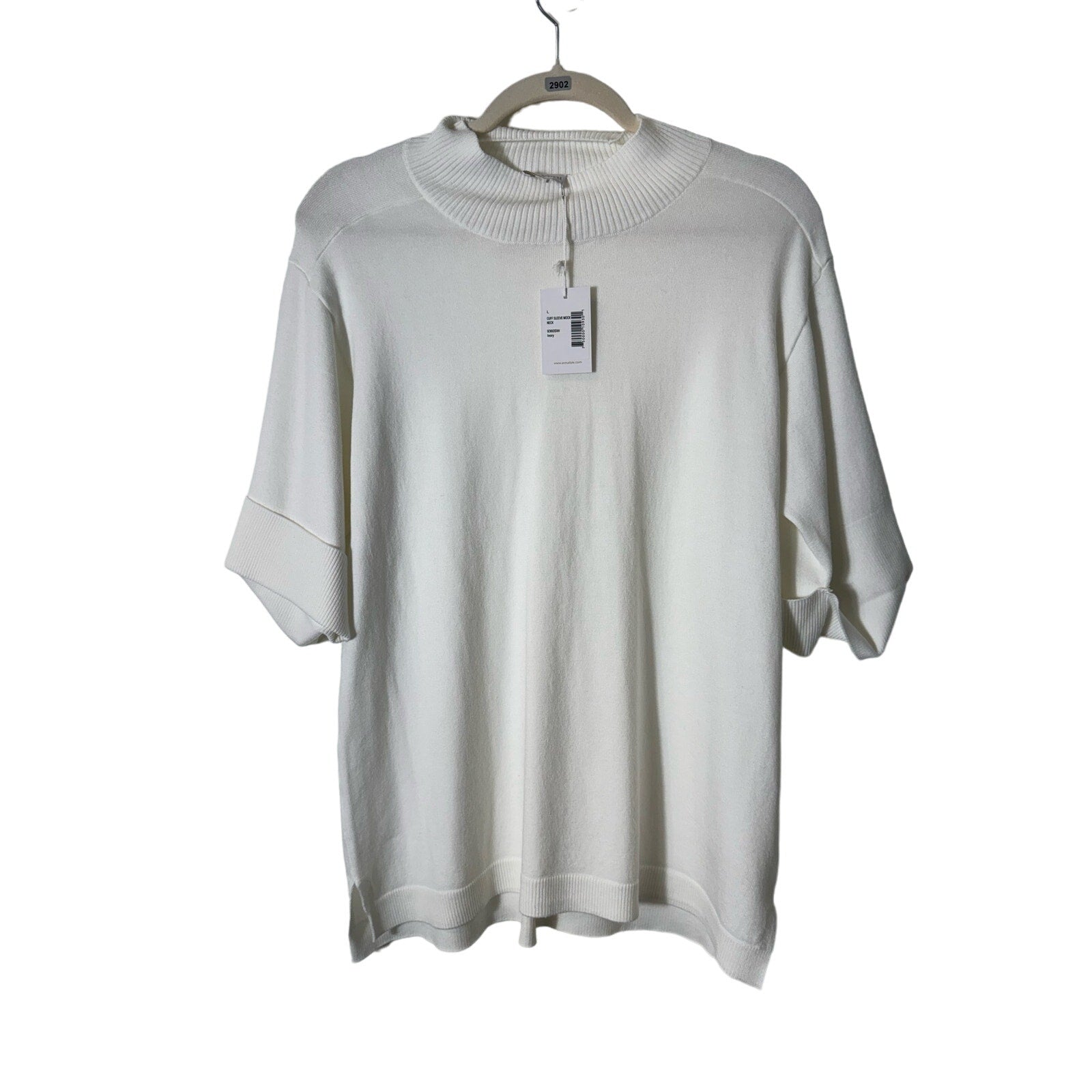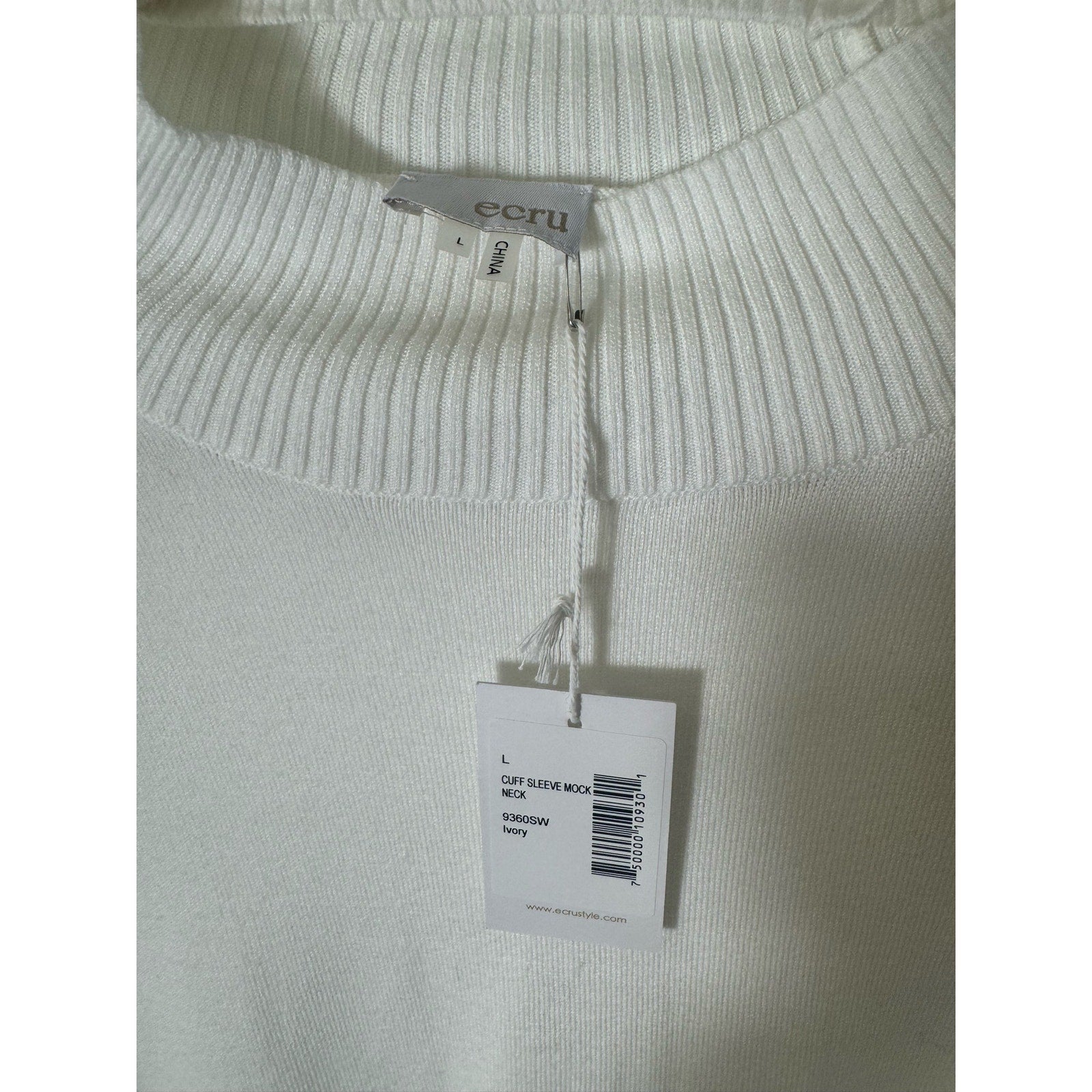 NWT Ecru Ivory Cuff Sleeve Mock neck Sweater Sz L. Wardrobe staple off white sweater.  New with tags.