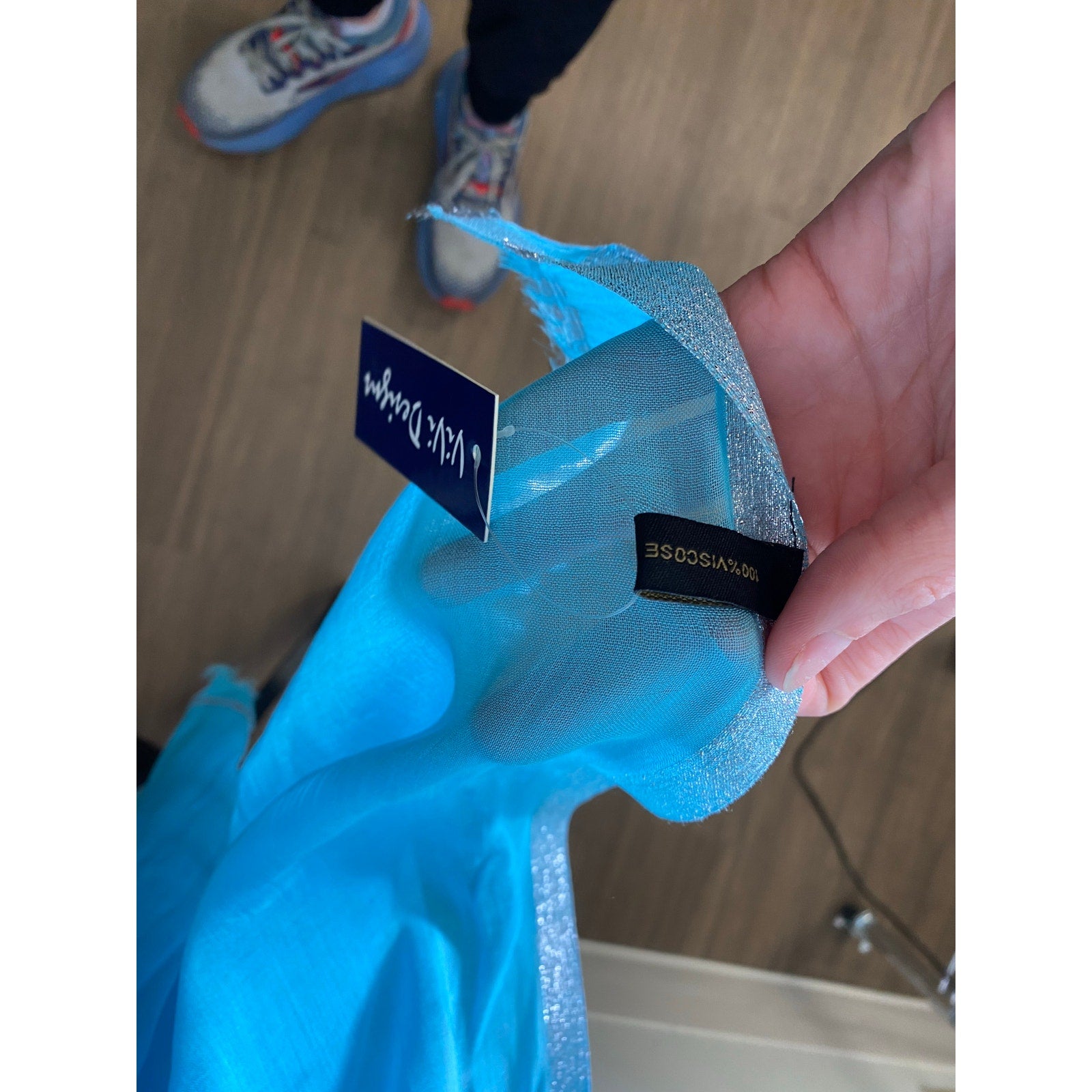 NWT. Viscose Scarf. Fringed edges. Metallic threads on teal fabric