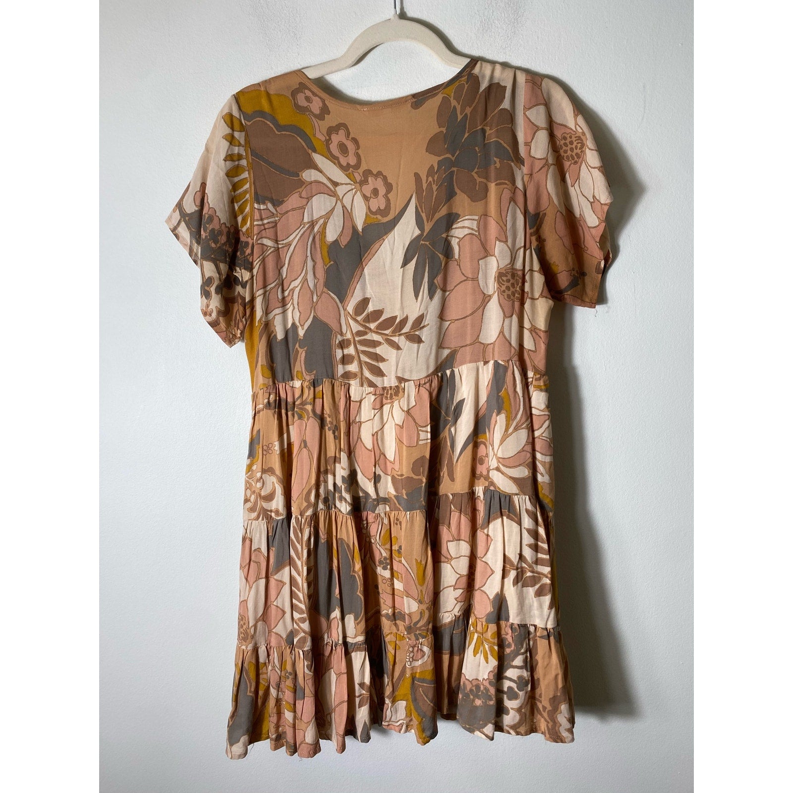 Olivaceous Muted Floral Short Sleeve Dress Sz M