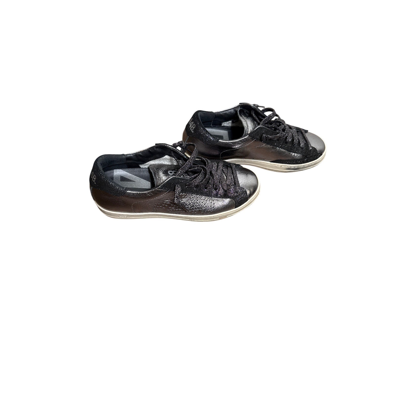 P448 Silver And Shimmery Black Tennis Shoes Sz 39 (8.5)