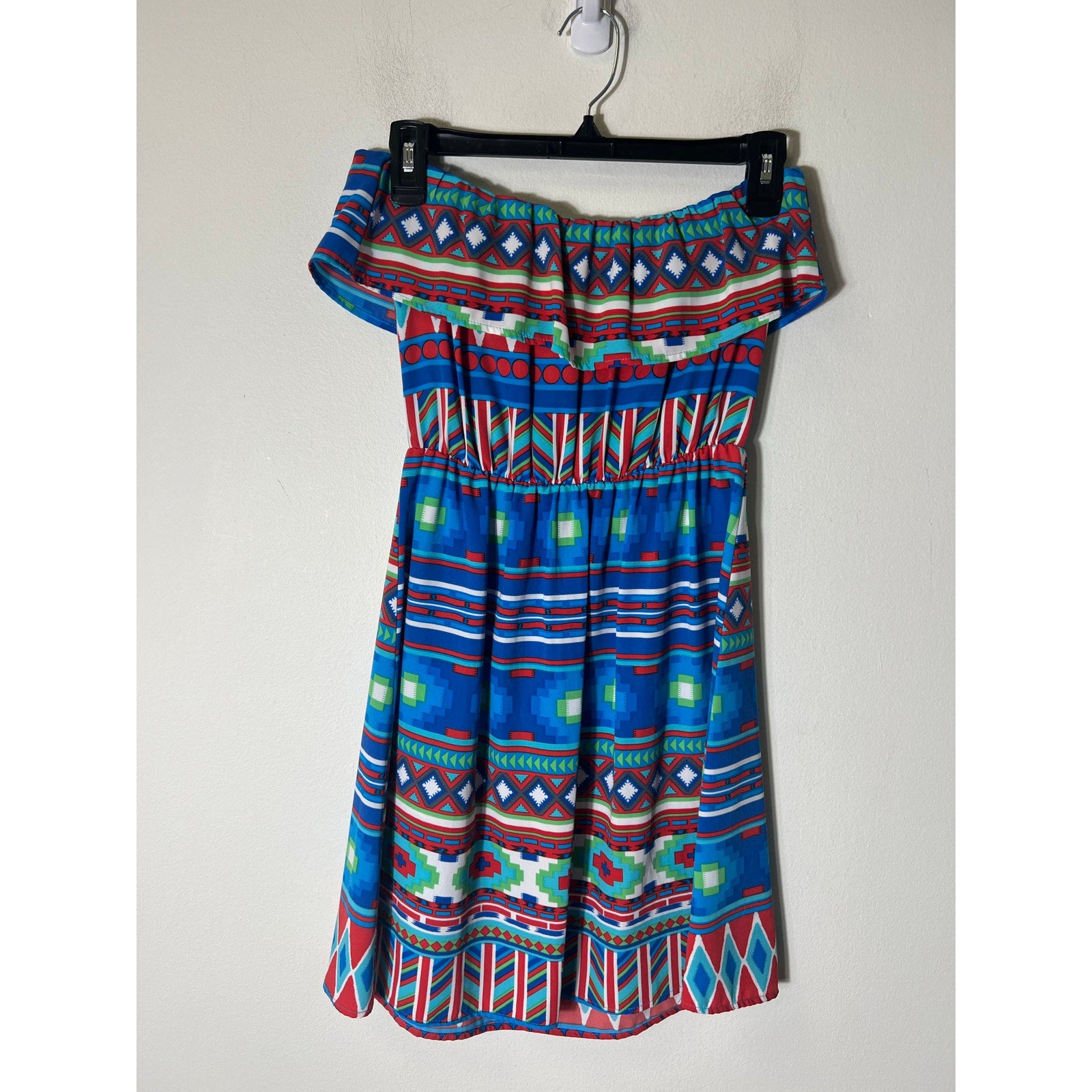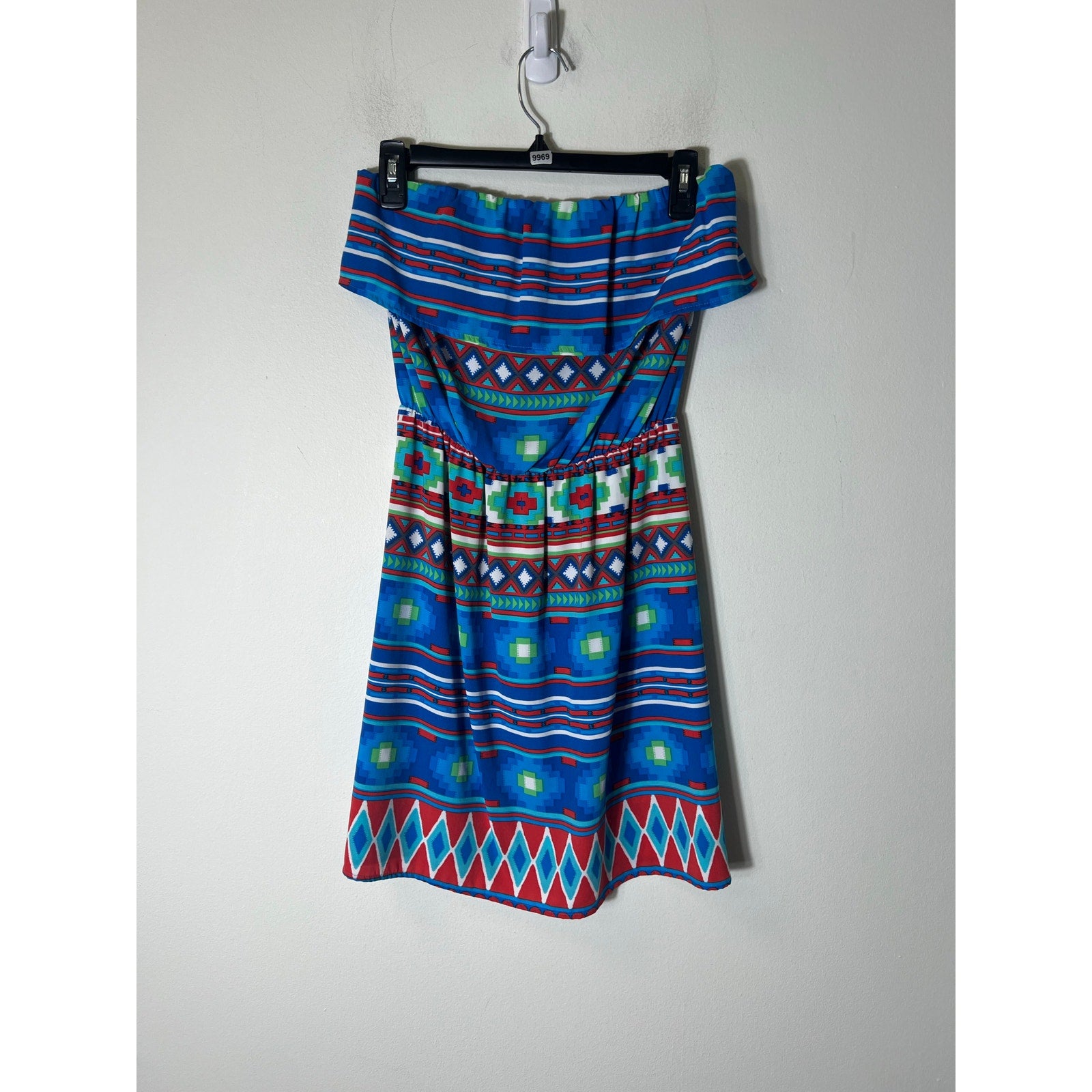 Pixi + Ivy Blue and Orange Strapless Mini Dress Sz xs