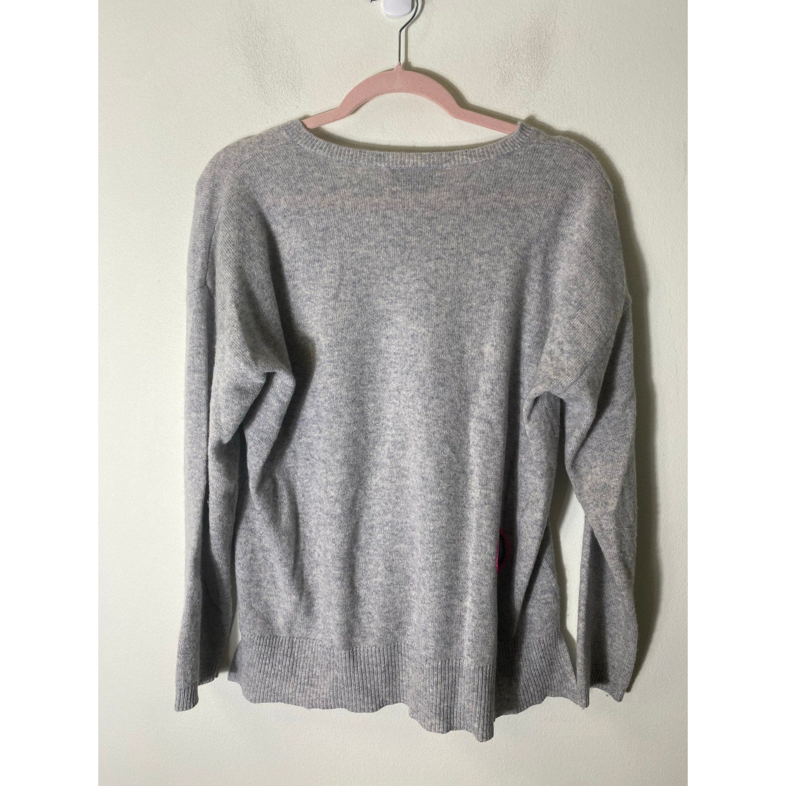 Excellent Condition. 100% Cashmere. Grey Sweater w multi color #LOVE Sz M