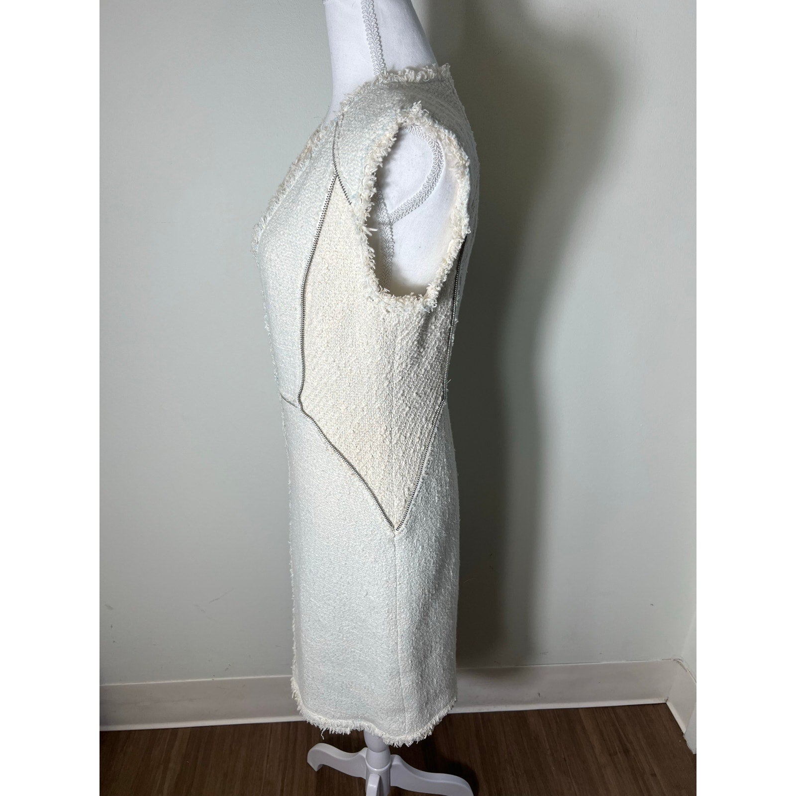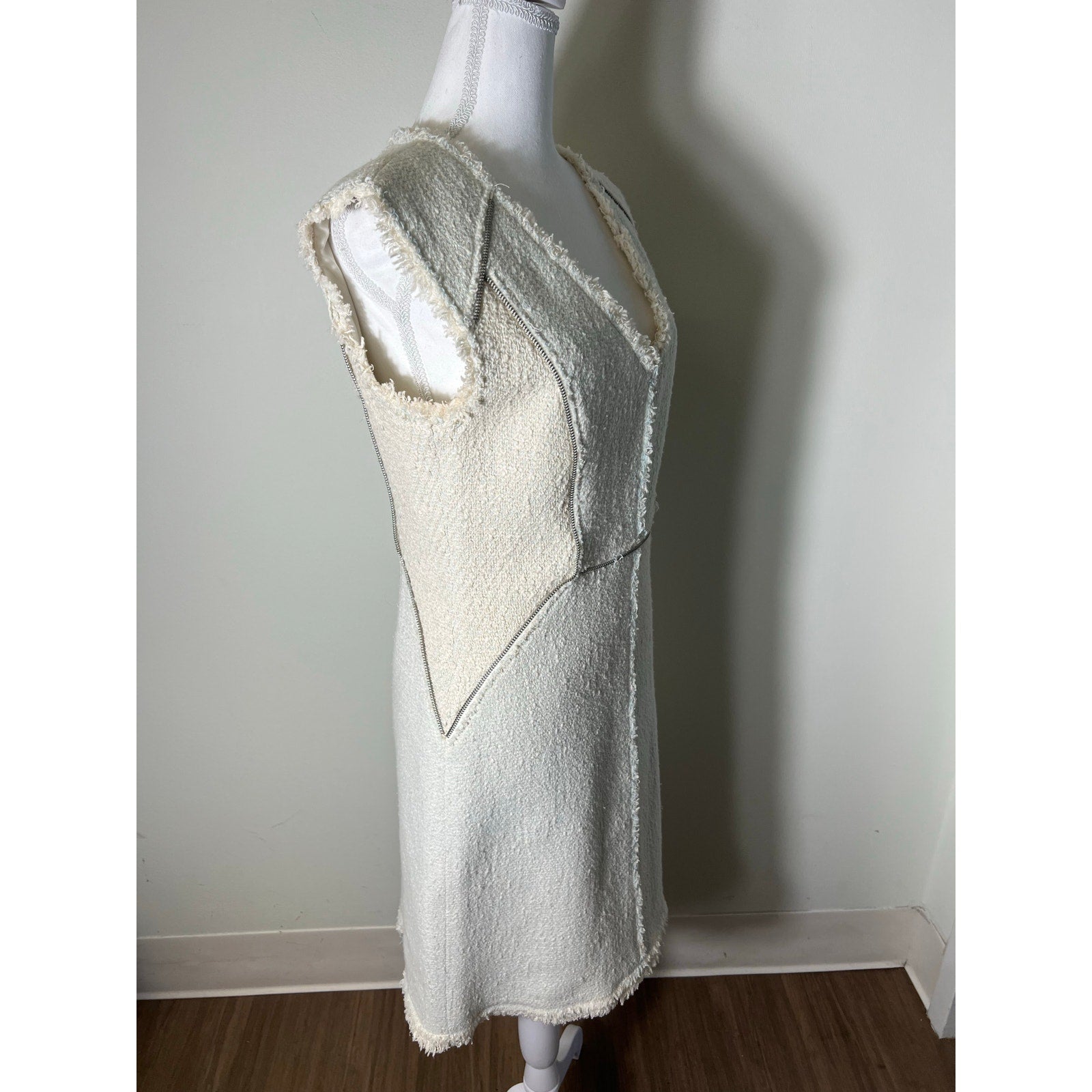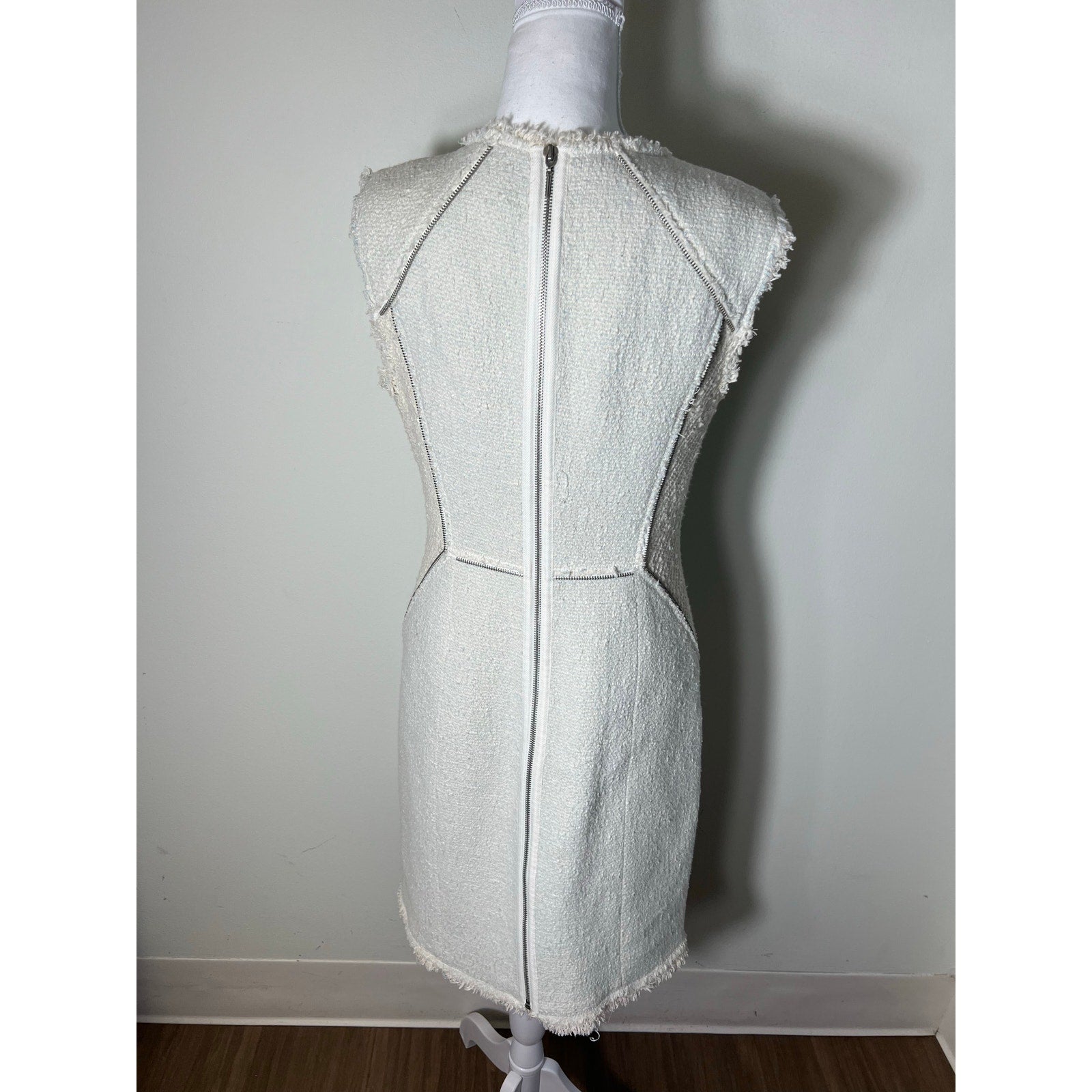 Rebecca Taylor Cream With Light Blue Insets V Neck Sleeveless Mini Dress Sz 8