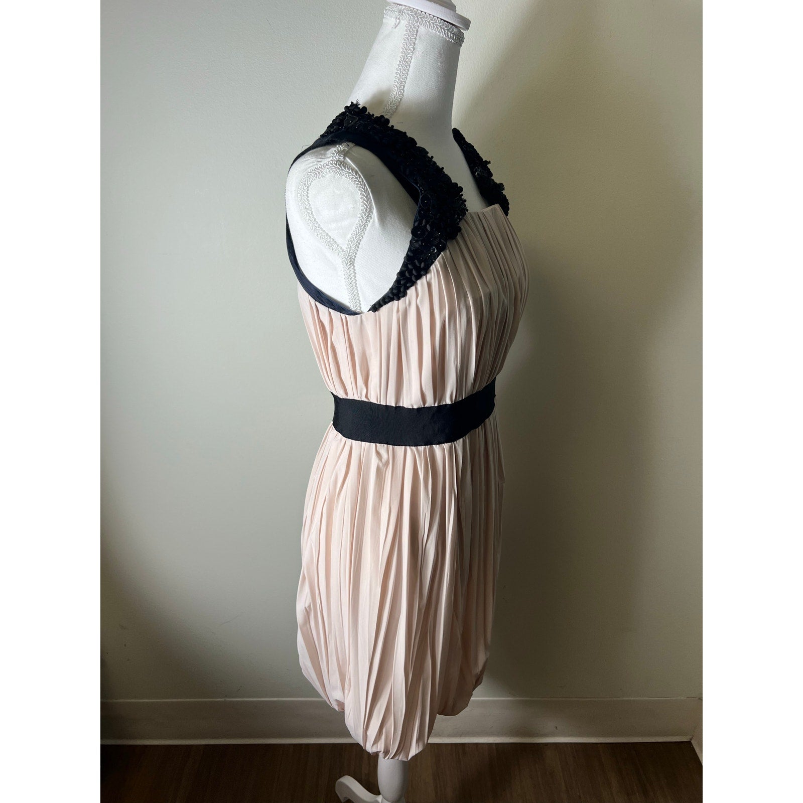 Robert Rodriguez Tan/Blush Pink Black Pleated Knee Length Silk Dress Sz 6