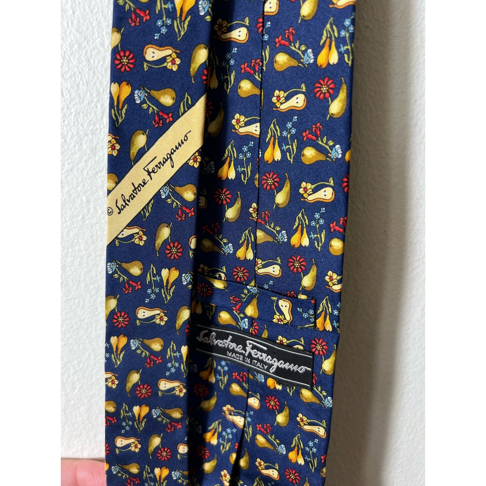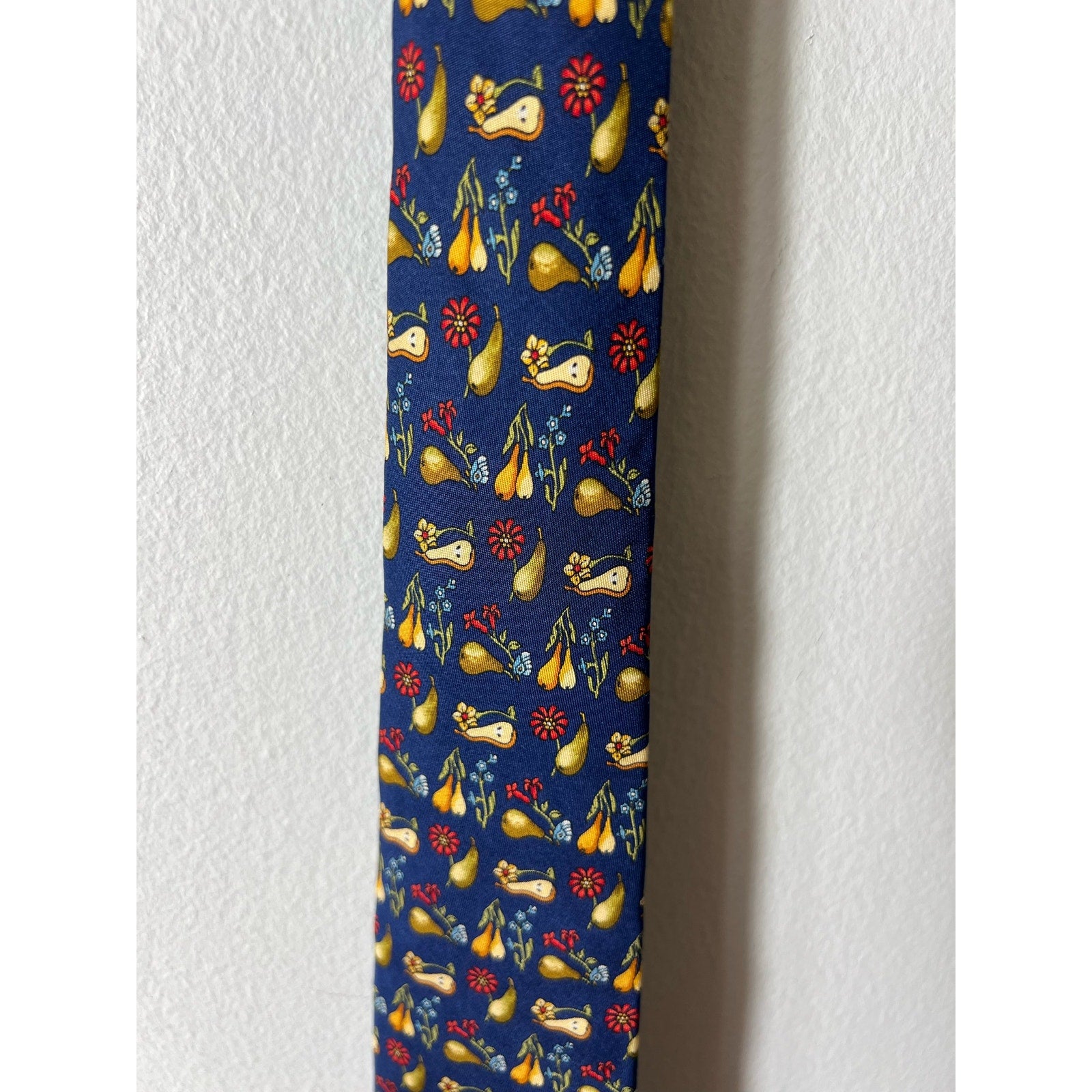 Salvatore Ferragamo Men's Navy Fruit and Flower Print Tie