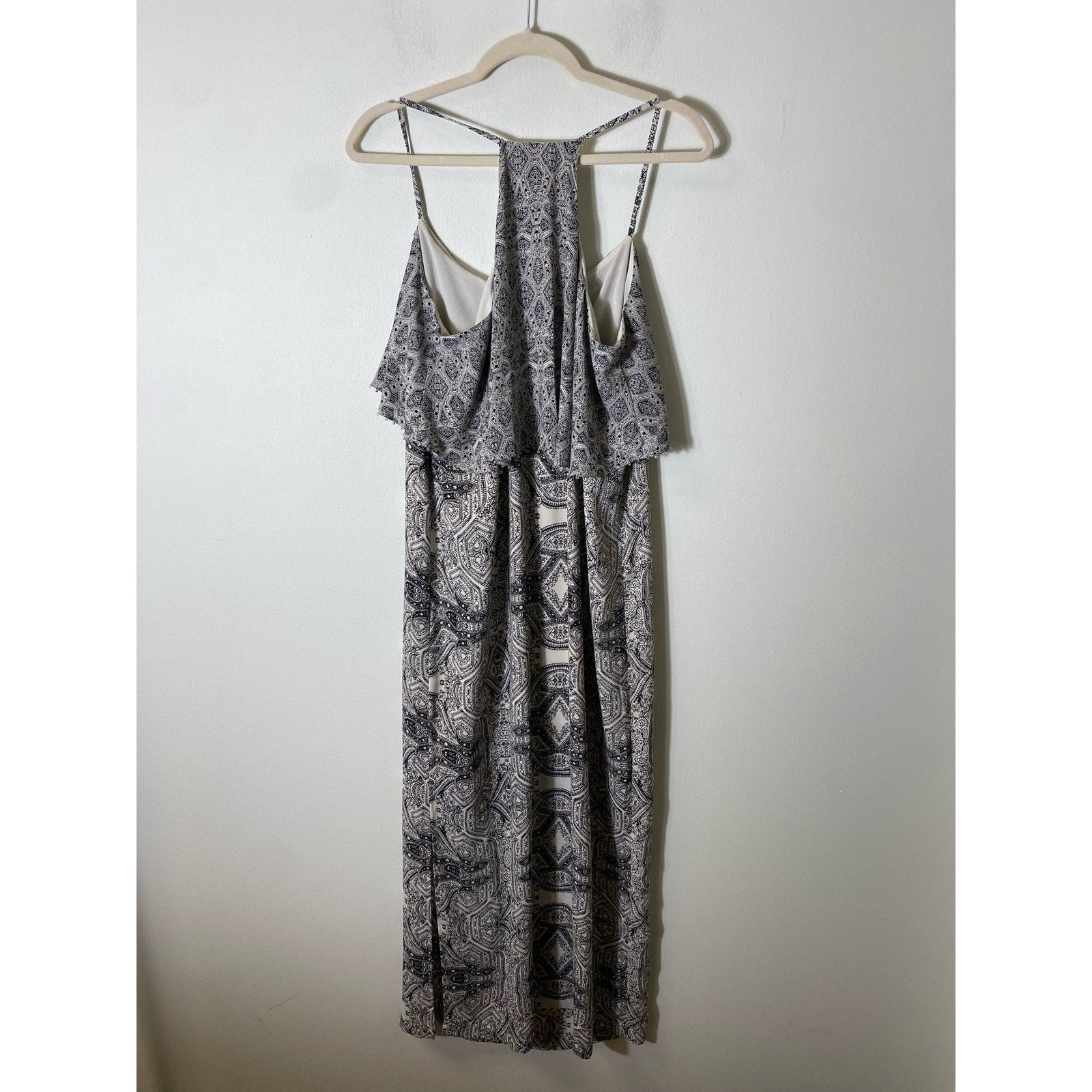 VanessaVirginia Off White Black Print Long Dress Sz 12