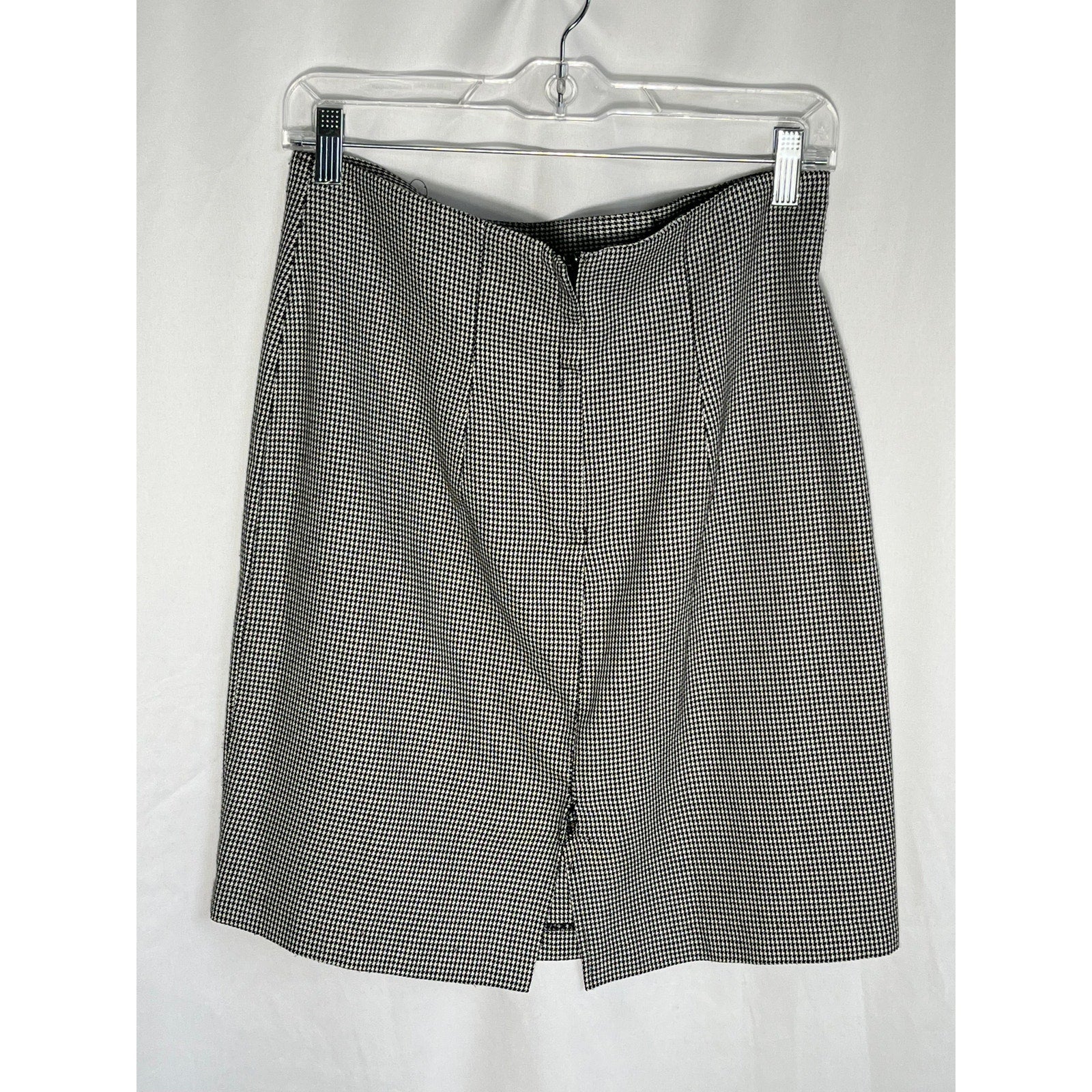 Vintage black and white houndstooth pencil skirt. Size L 8/10. Perfect for business formal. Zips up the back. Vent flap in the back is torn further in the stitching. Small brown stain on the front of the skirt.