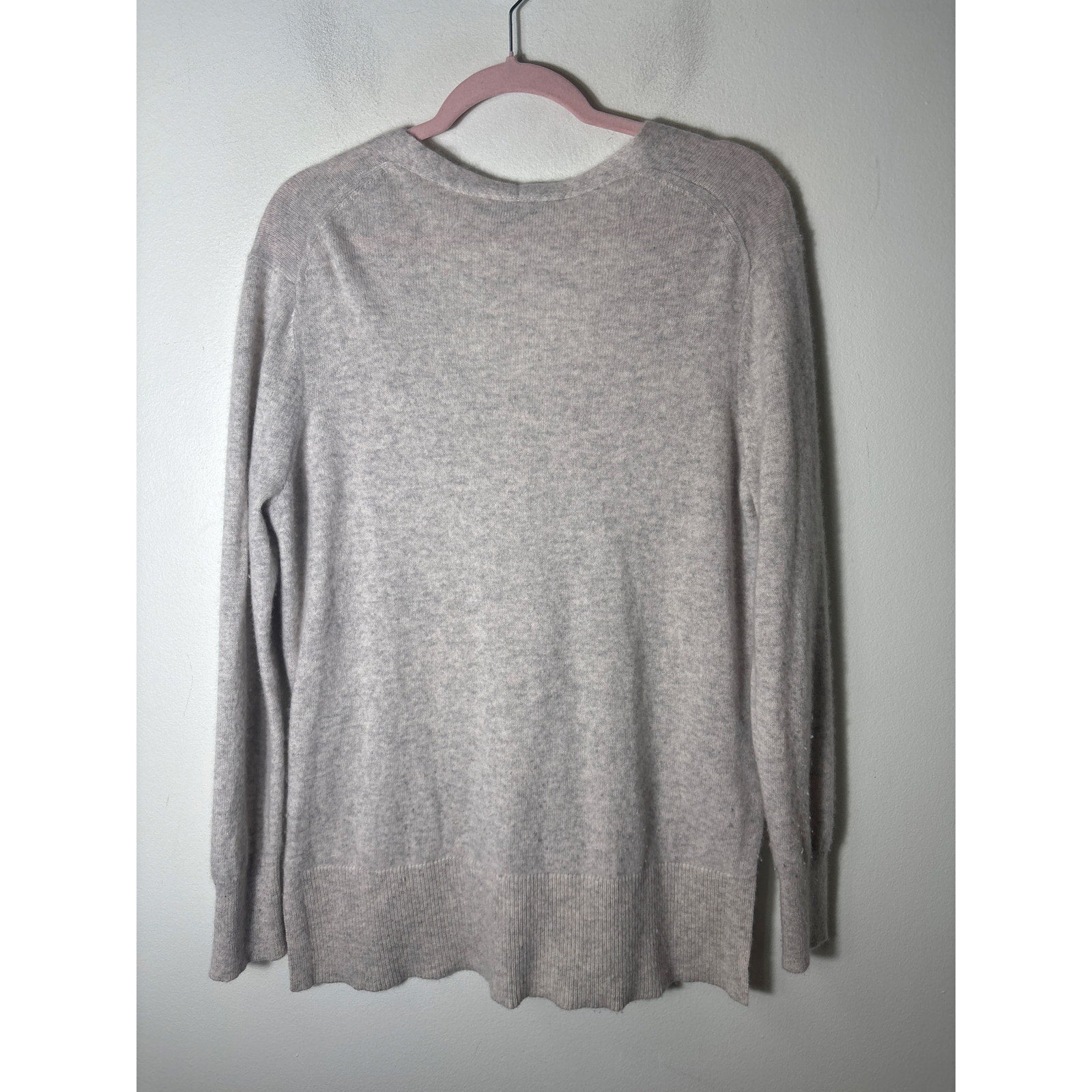 White + Warren Gray 100% Cashmere V Neck Sweater Sz L