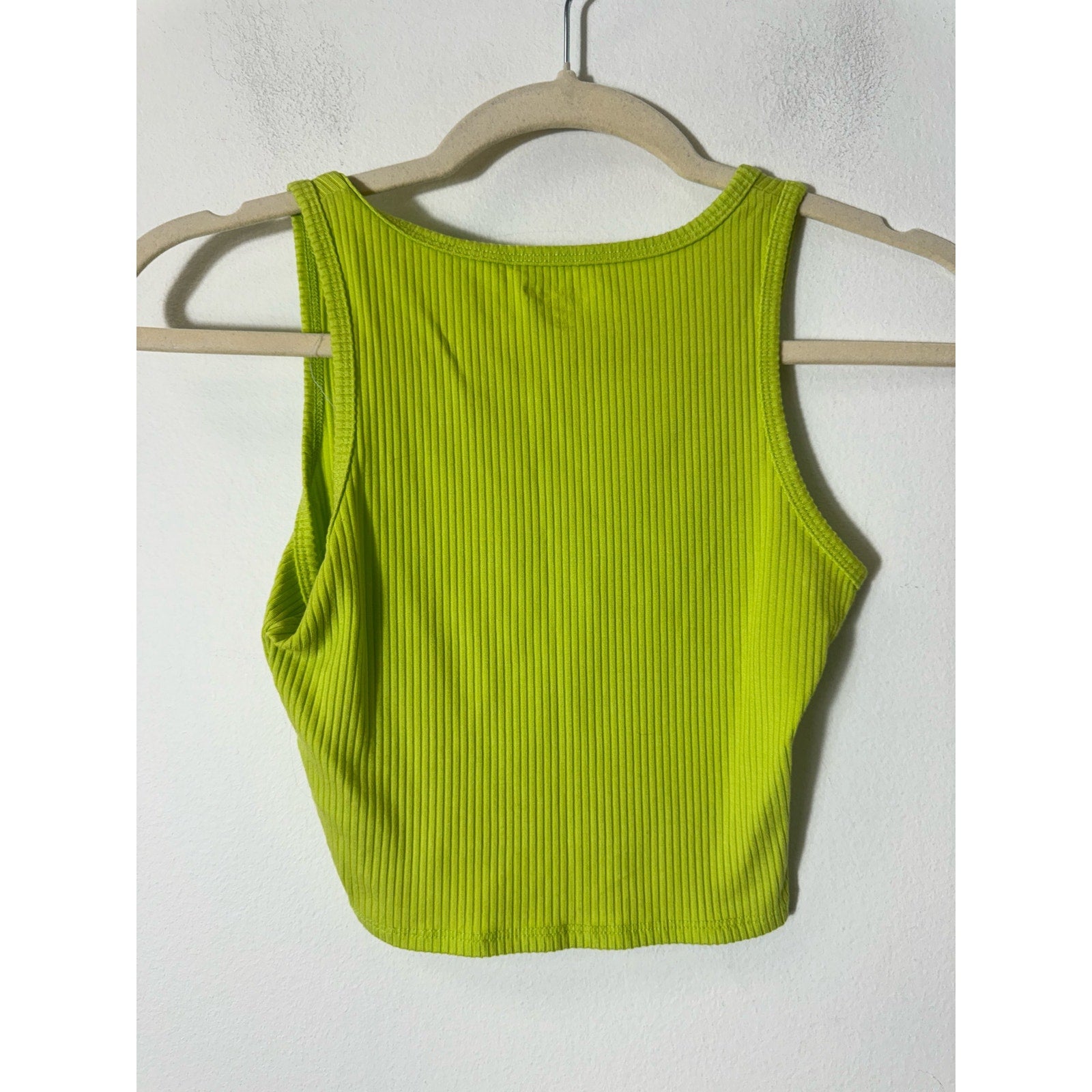 Year of Ours Lime Green Ribbed Cropped Tank Top Sz XS. Notched neck, great condition.